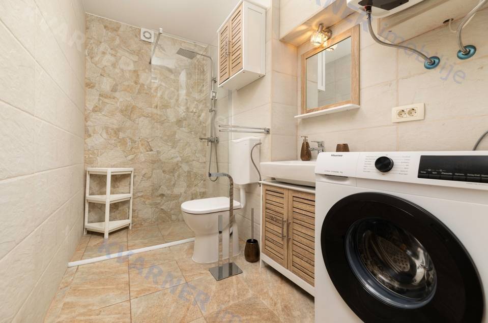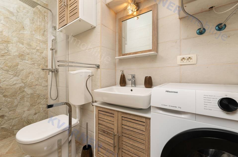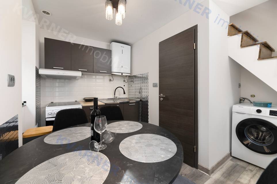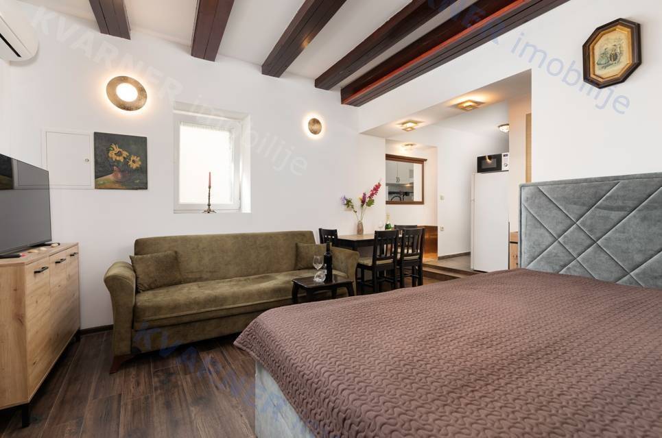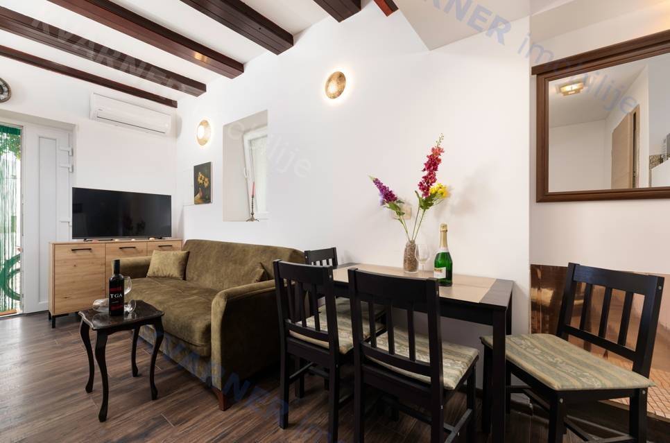 Unutar nekretnine nalaze se dva odvojena studio apartmana. U prizemlju je smješten šarmantan studio s naglašenim kamenim detaljima koji daju poseban karakter prostoru, dok se na katu nalazi prostraniji i moderno uređen studio s lijepim pogledom na more. Oba apartmana su potpuno namještena i opremljena, što omogućuje trenutačno korištenje ili iznajmljivanje bez dodatnih ulaganja.