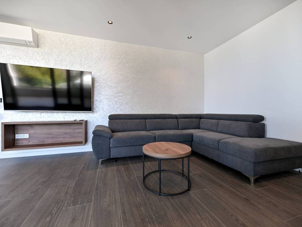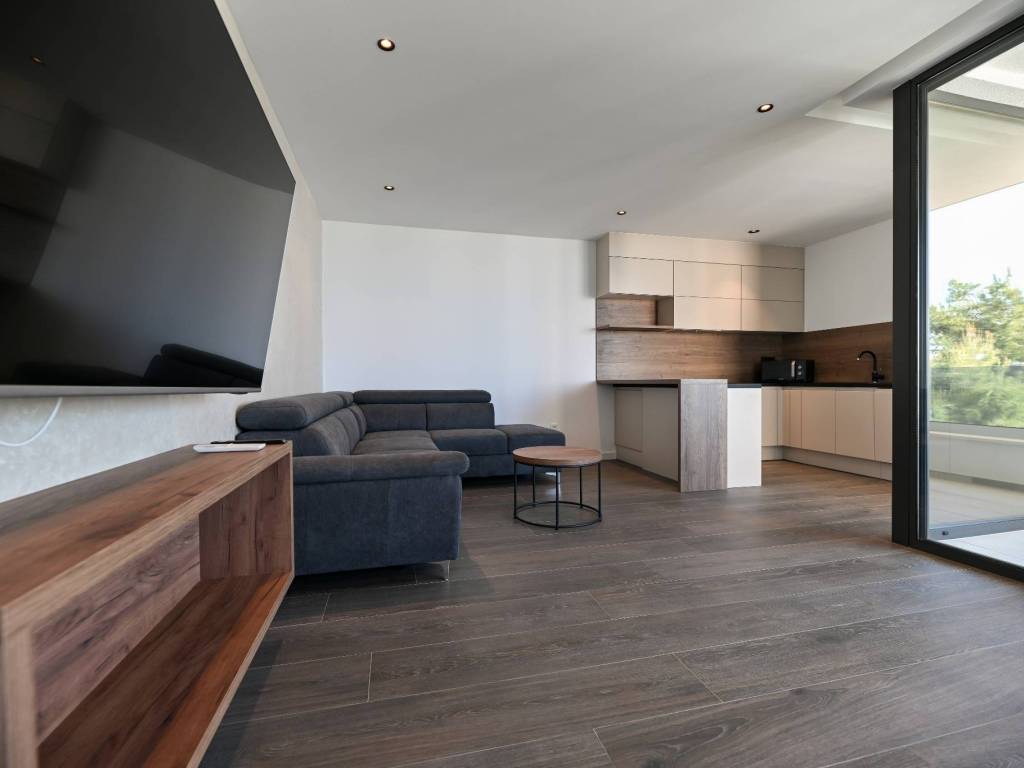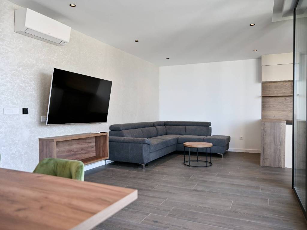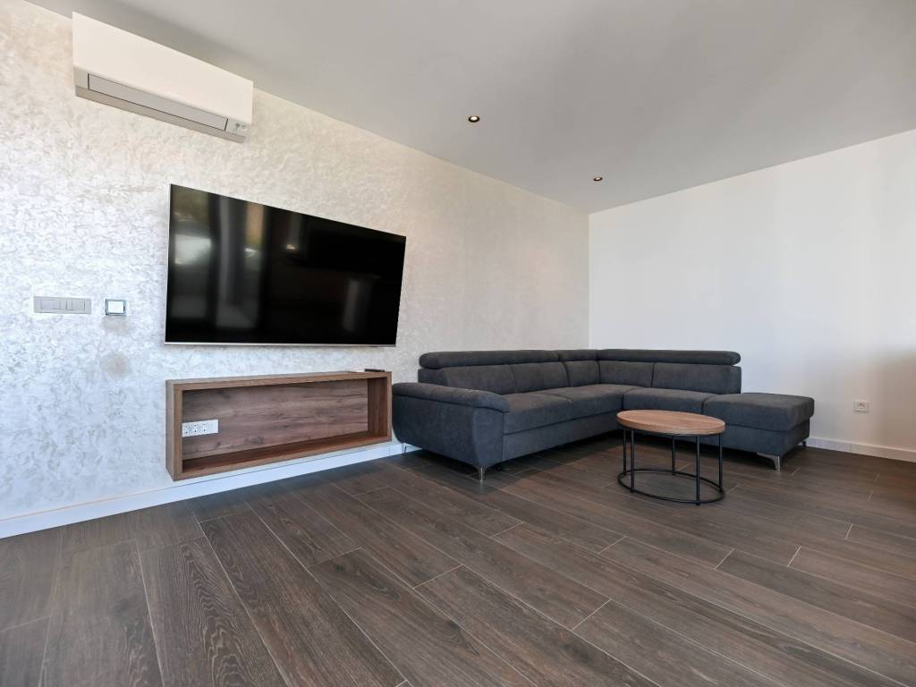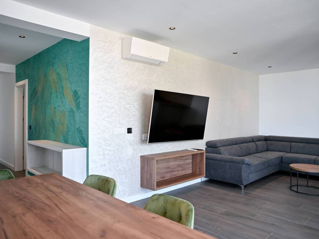 Kvaliteta i oprema. Stan je potpuno opremljen i spreman za useljenje: - kuhinja s aparatima - podno grijanje - klima uređaji - ugradbeni ormari - box-spring kreveti - LED Philips TV u dnevnom boravku - moderan i elegantan interijer