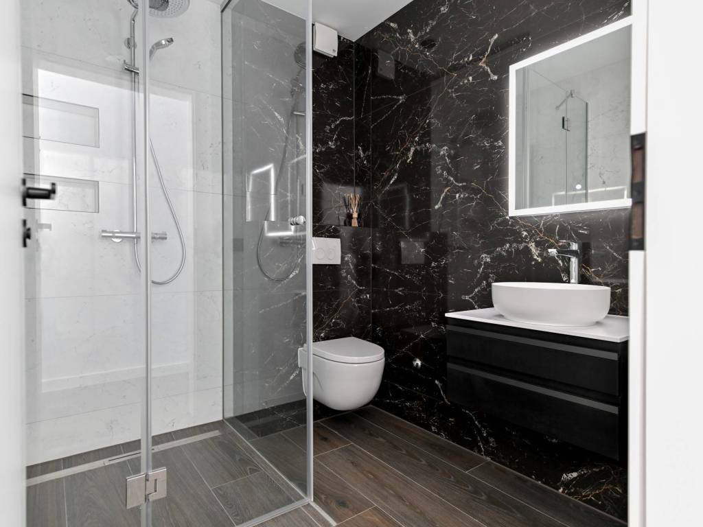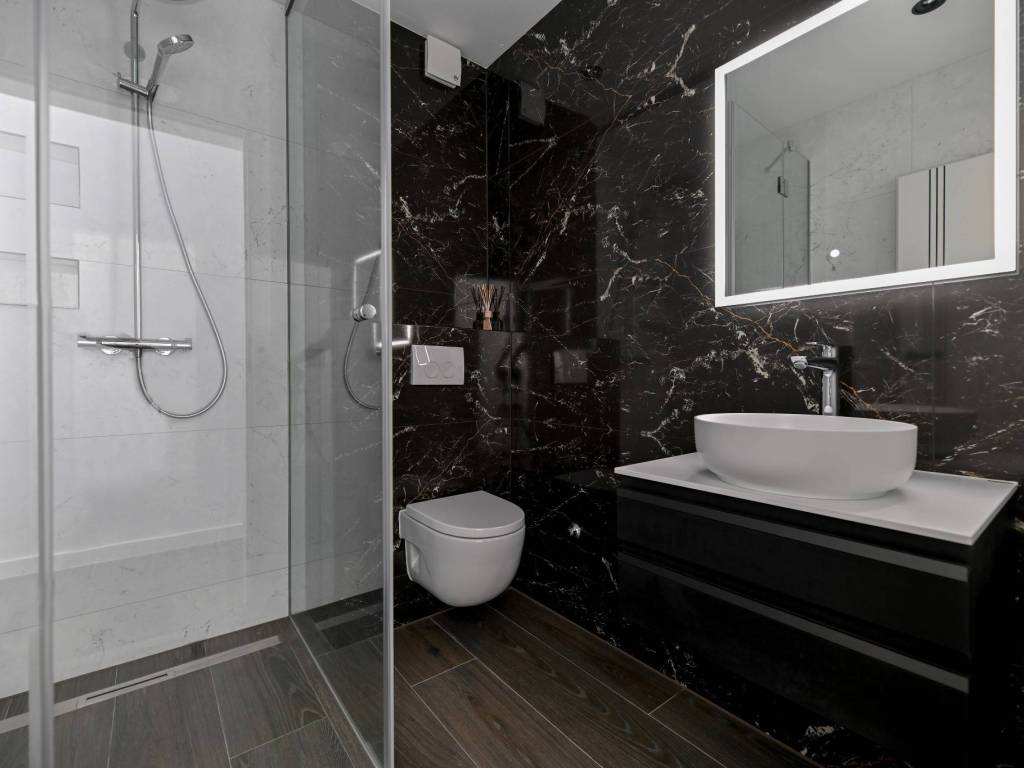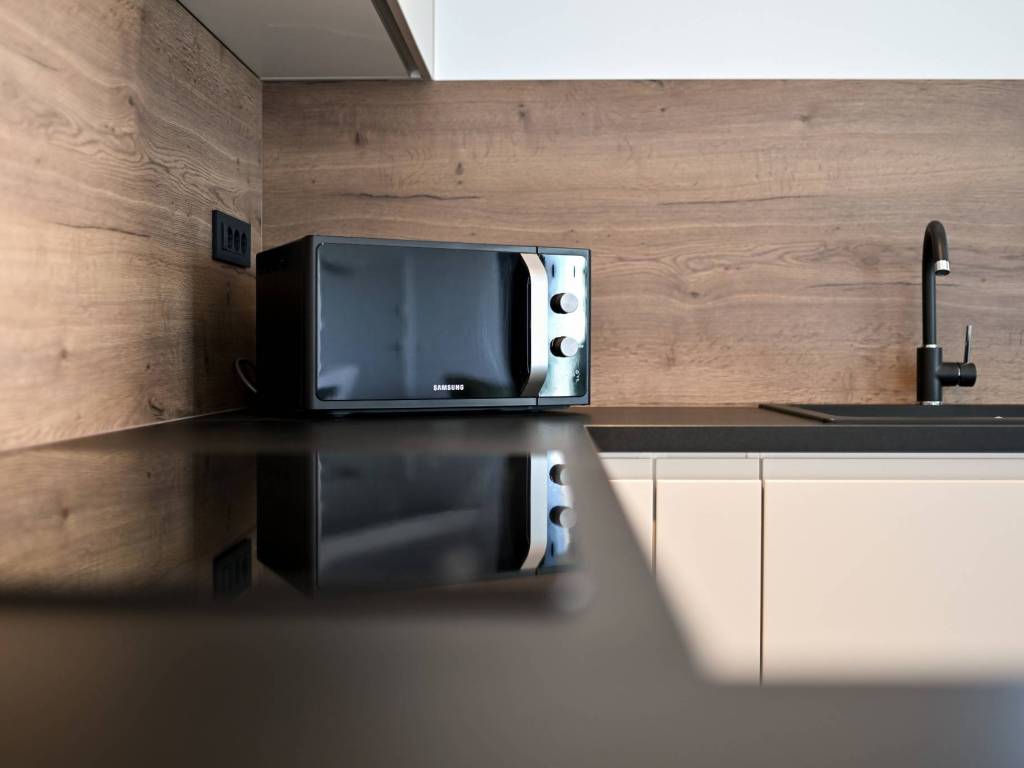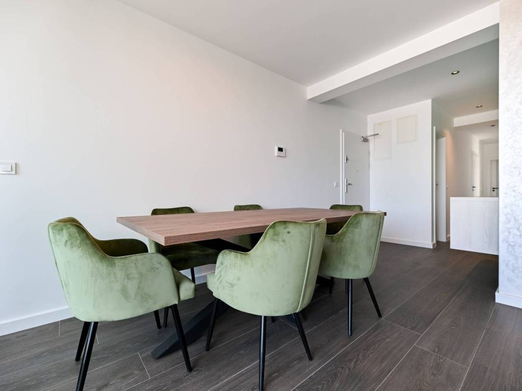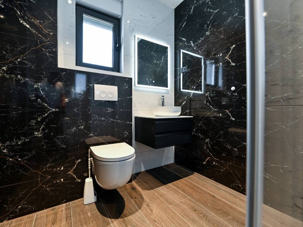 Kvaliteta i oprema. Stan je potpuno opremljen i spreman za useljenje: - kuhinja s aparatima - podno grijanje - klima uređaji - ugradbeni ormari - box-spring kreveti - LED Philips TV u dnevnom boravku - moderan i elegantan interijer