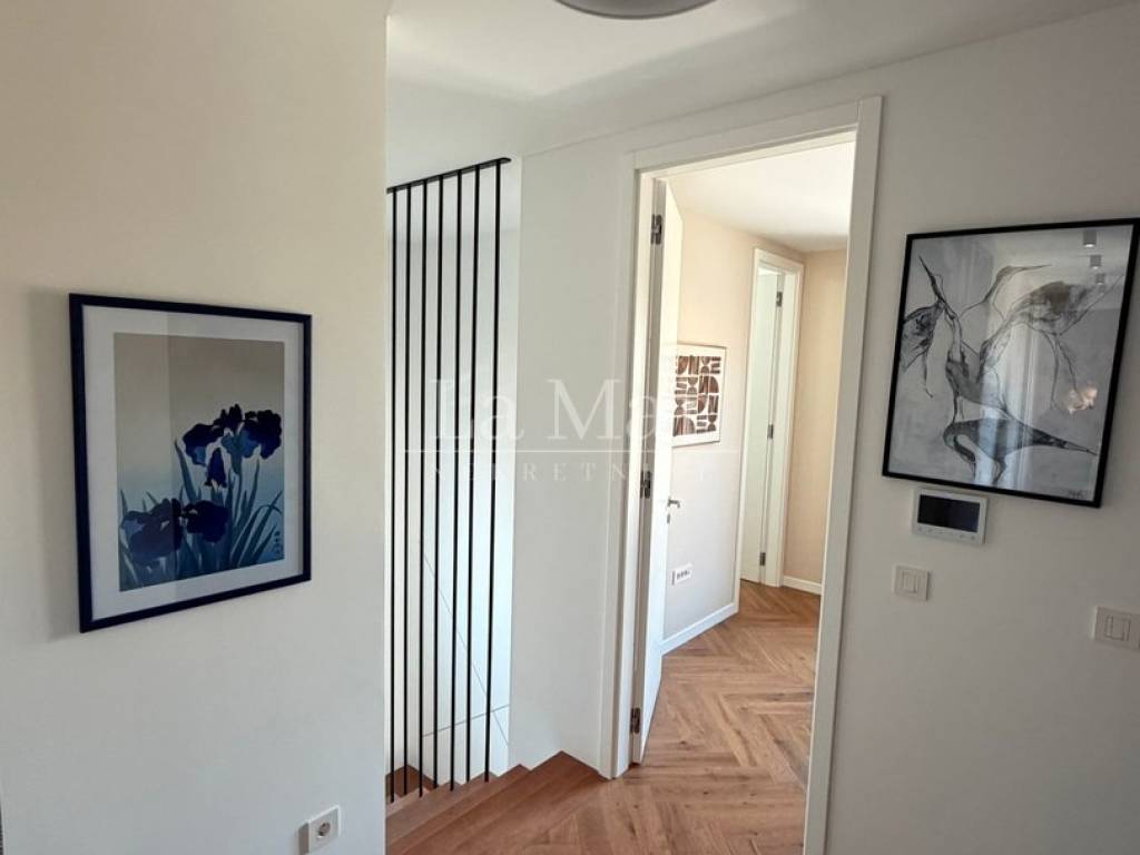 - svijetao hodnik s ugradbenim ormarom - glavna spavaća soba s walk-in garderobom - dvije dodatne spavaće sobe (jedna s vlastitom kupaonicom i izlazom na natkrivenu terasu) - dodatna zajednička kupaonica