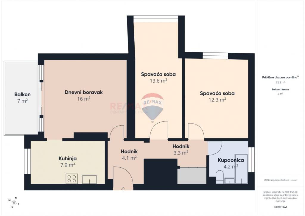 Stan ukupne stambene površine 65,56 m² smješten je na 3. katu stambene zgrade koja ukupno ima 8 stanova.