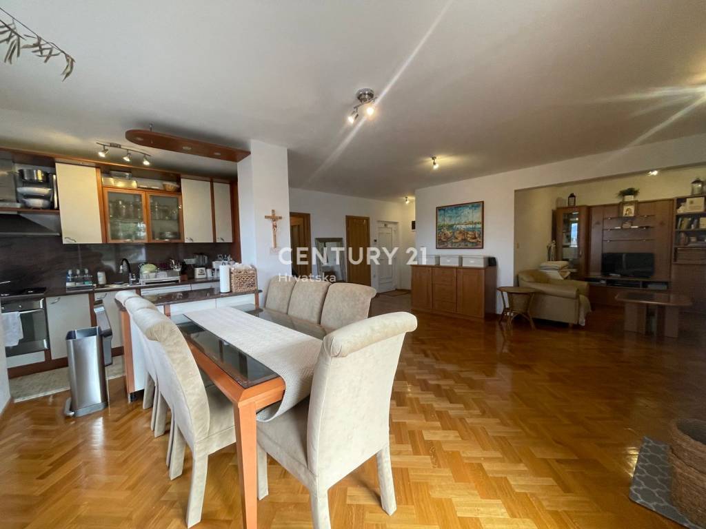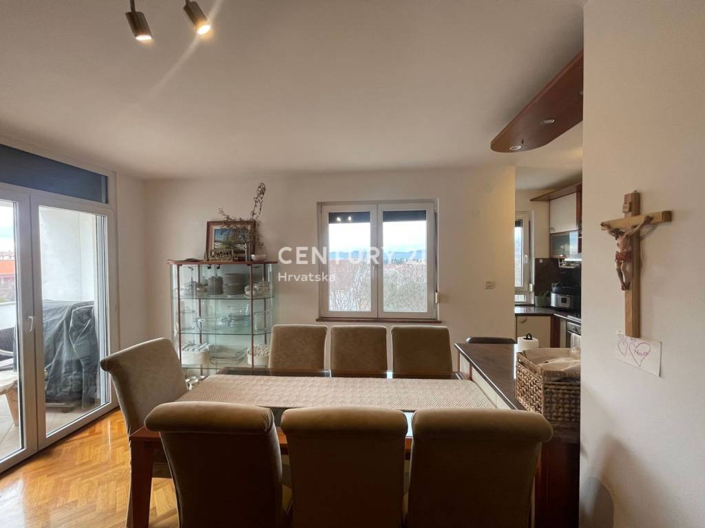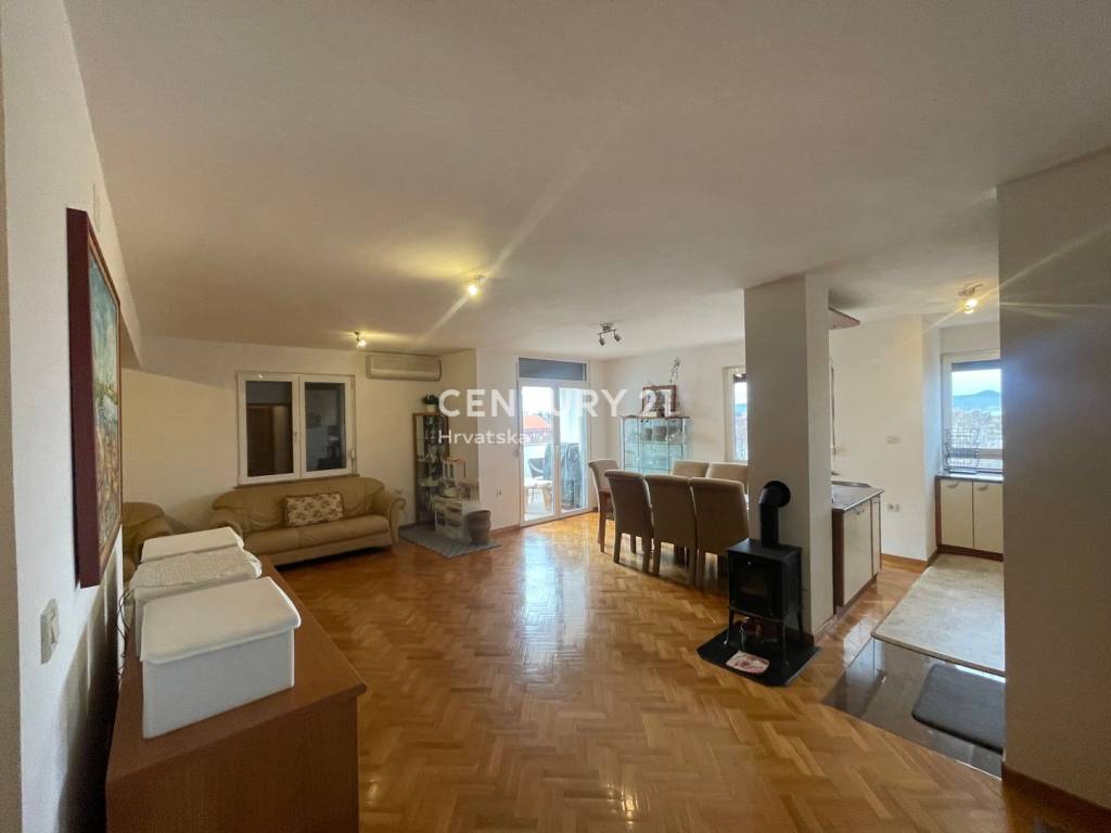 Prodaje se stan na trećem katu zgrade, ukupne površine 100,84 m2, stan se sastoji od četiri sobe, 3 balkona, kuhinja, 2 kupaonice, PVC stolarija, parlafon, drvarnica i garaža ukupne površine 15,93 m2.