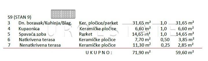 PRODAJE SE dvosoban stan oznake S9 na 2. katu stambene zgrade ukupne površine 71,90 m2 i neto korisne površine 59,60 m2.