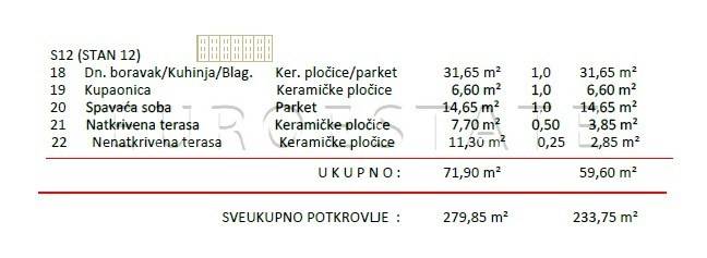 PRODAJE SE dvosoban stan oznake S12 na 2. katu stambene zgrade ukupne površine 71,90 m2 i neto korisne površine 59,60 m2.