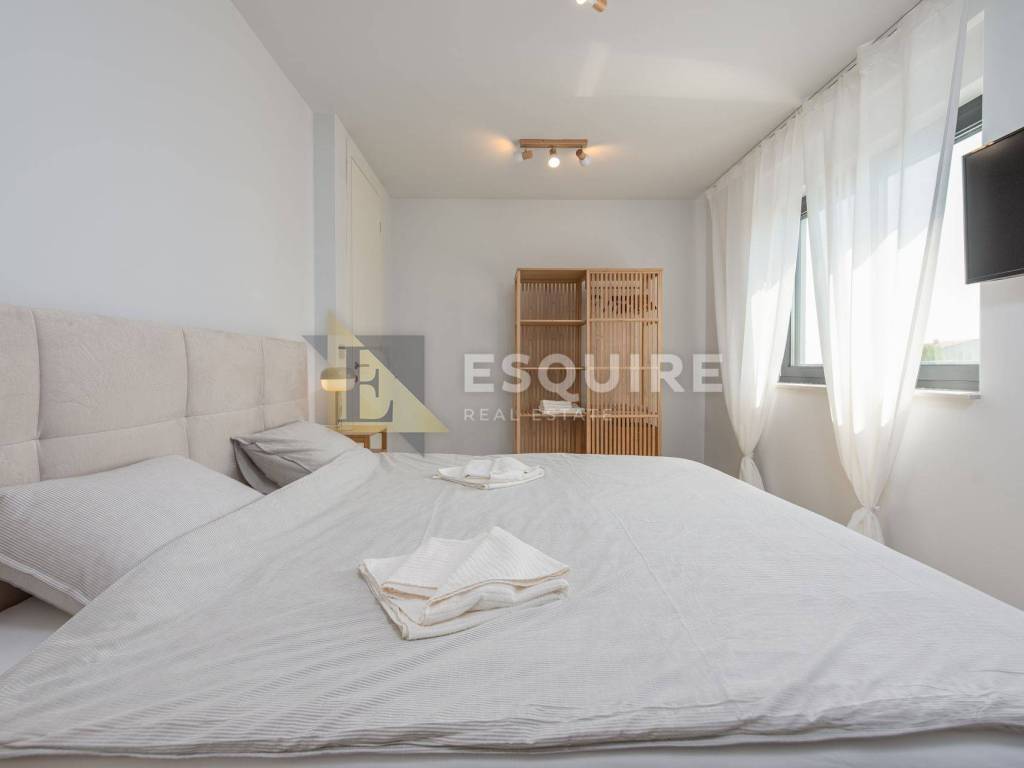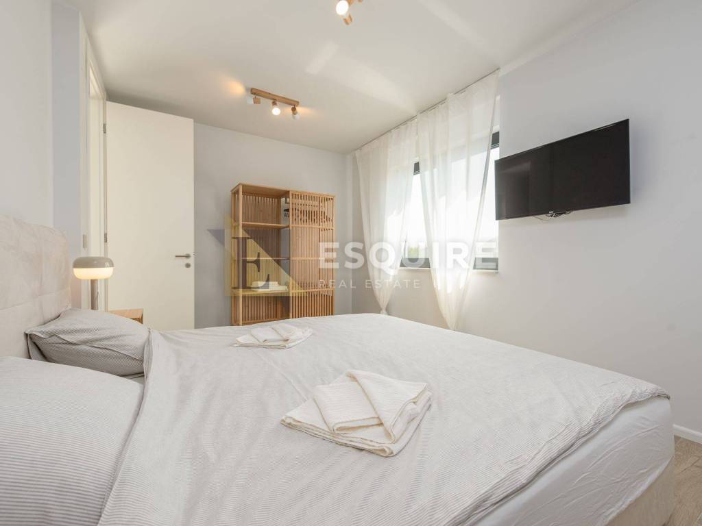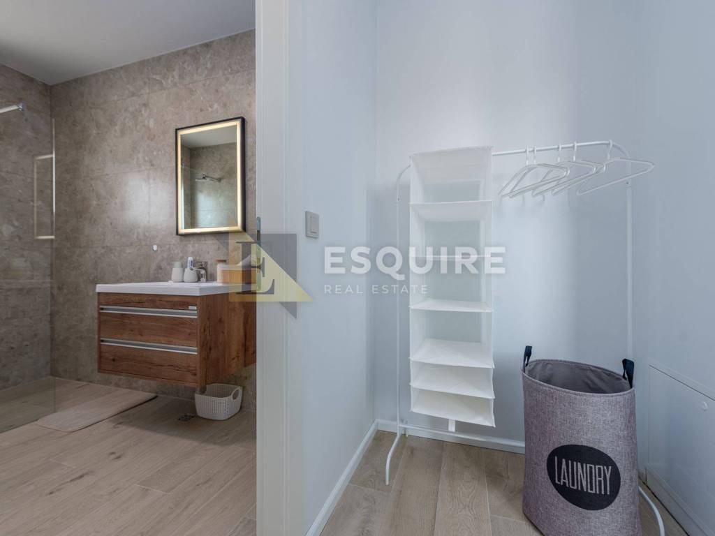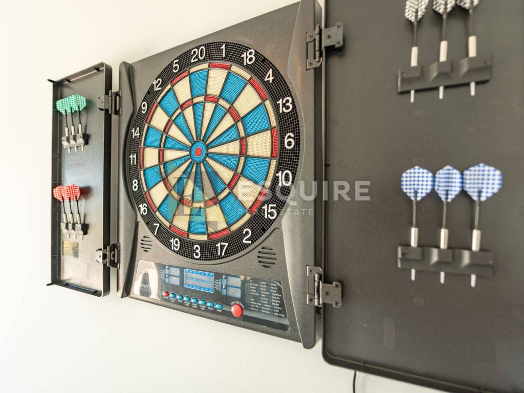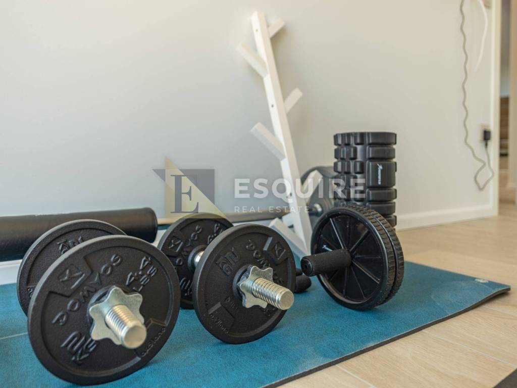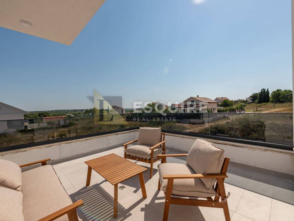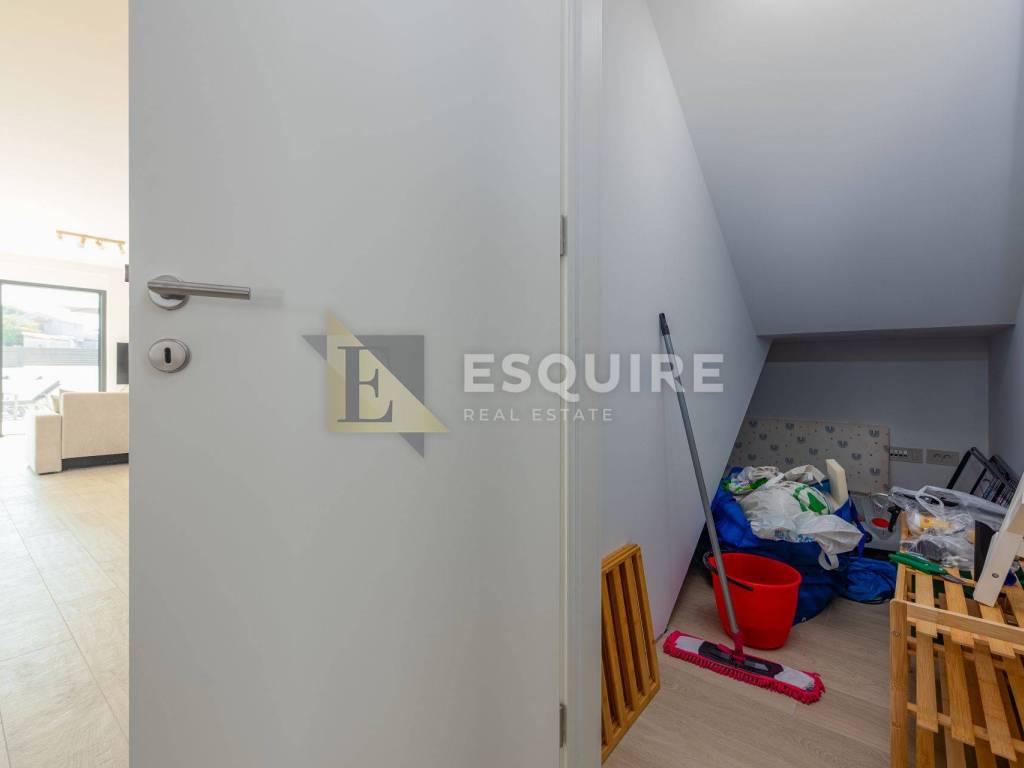 Vanjski prostor pažljivo je uređen – okućnica je obogaćena mediteranskim biljem i sustavom automatskog navodnjavanja, dok se u dvorištu nalazi natkrivena terasa s roštiljem, idealna za boravak na otvorenom. Tu je i prostrani bazen opremljen sustavom za protustrujno plivanje, automatskim doziranjem kemikalija te mogućnošću grijanja i hlađenja putem dizalice topline.