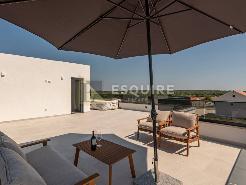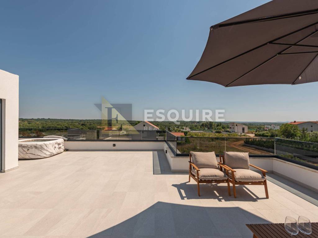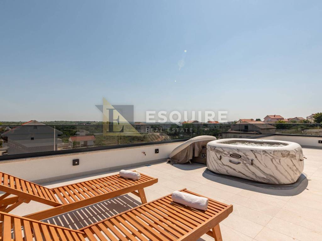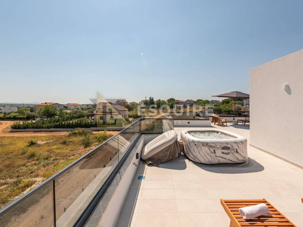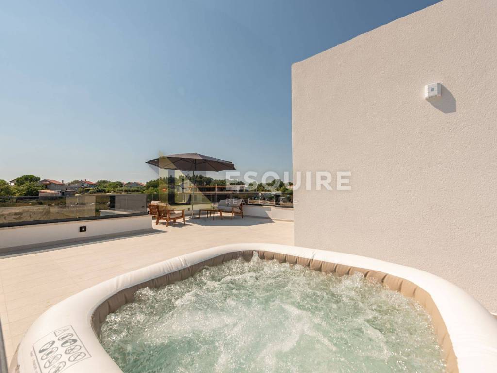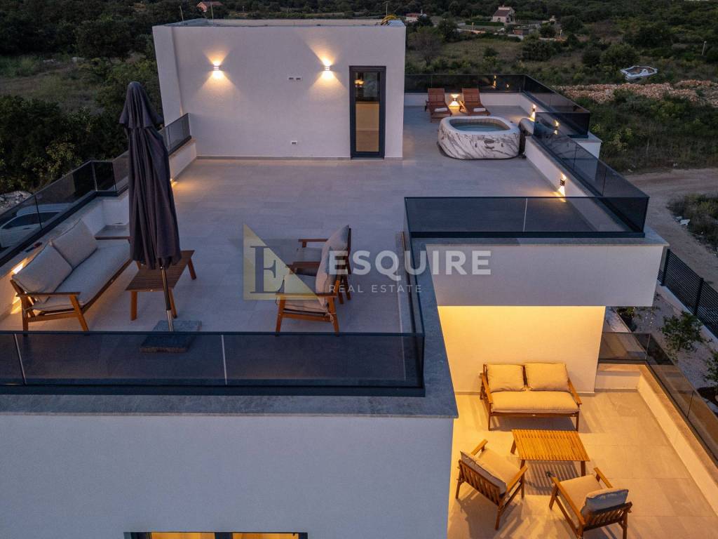 Na krovnoj terasi smješteni su jacuzzi i pergola, uz već provedene instalacije koje omogućuju jednostavnu izvedbu ljetne kuhinje.