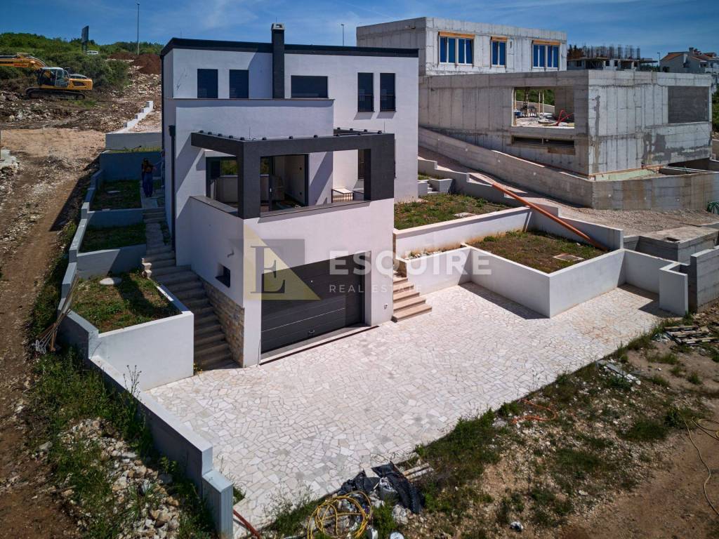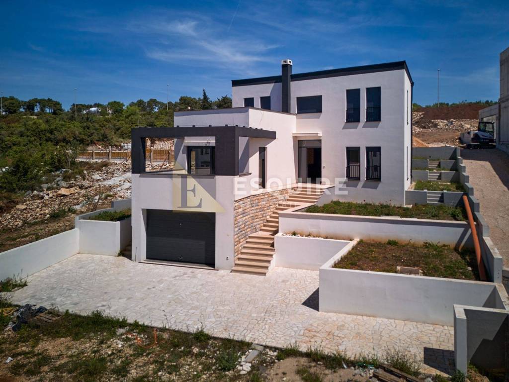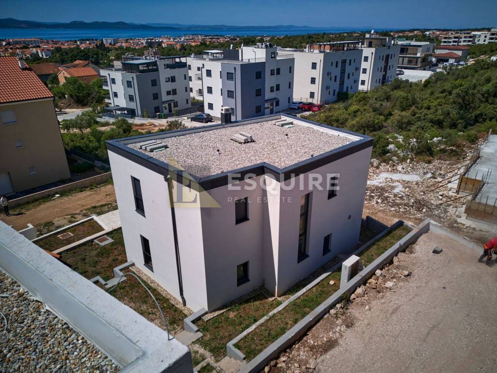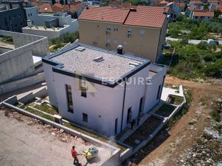 U mirnom i atraktivnom dijelu Zadra, u naselju Plovanija, smještena na blagoj uzvisini s očaravajućim panoramskim pogledom na more i otoke, nalazi se ova elegantna četverosobna vila vrhunske kvalitete.
