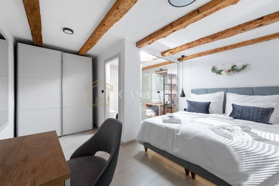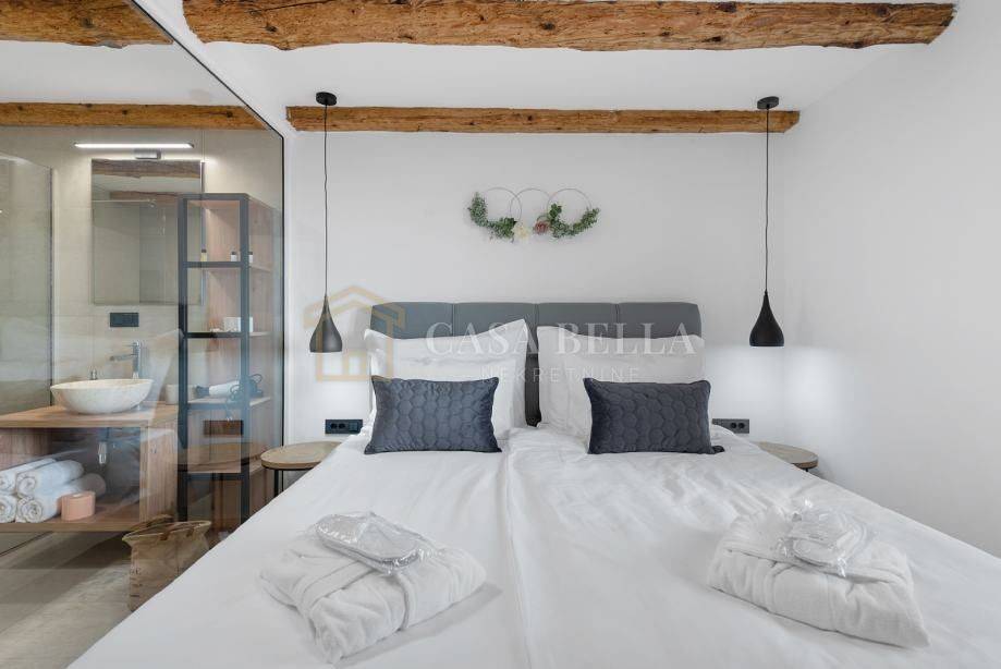 Ova impozantna nekretnina sastoji se od četiri prostrane spavaće sobe, velike natkrivene terase s roštiljem, privatnog bazena, saune te vanjskog jacuzzija.