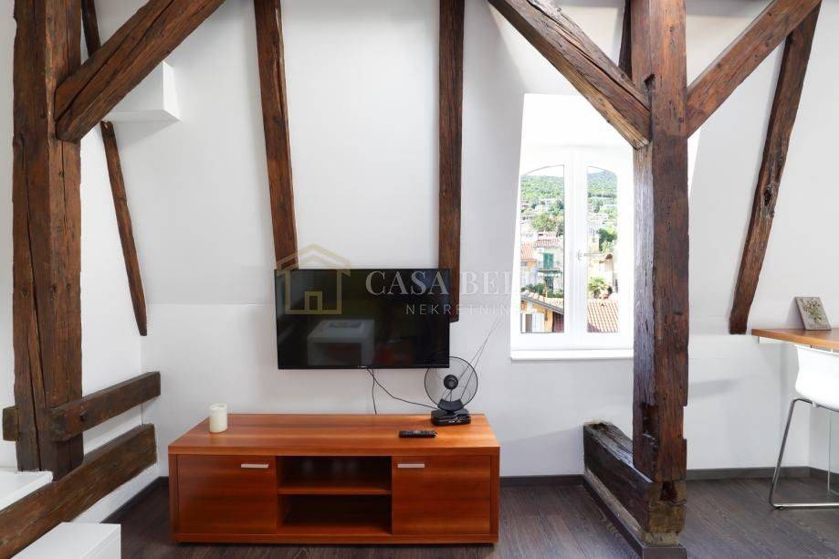 CASA BELLA iz ponude izdvaja u strogom centru Opatije stan na vrlo atraktivnoj lokaciji uz samo more površine 112 m2 . U naravi radi se o dva stana. Prvi stan poršine 43.88 m2 je jednosobni sa dnevnim boravkom a sastoji se od jedne spavaće sobe,kuhinje,dnevnog boravka te kupaonice.