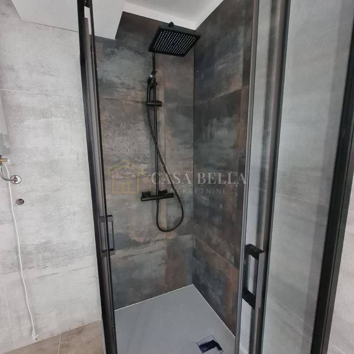 CASA BELLA nekretnine iz ponude izdvaja jednosobni stan s dnevnim boravkom nalazi se u urbanoj vili s pogledom na more. Vila je smještena u mirnom okruženju obiteljskih kuća. Stanu pripadaju dva parkirna mjesta s pripremom za punjač za električna vozila. Stan je na prvom katu i cijeli je okrenut prema jugu. Grijanje je podno, uz pomoć dizalice topline Daikin, a hlađenje klima uređajima Daikin u svakoj prostoriji. Sustavi grijanja i hlađenja mogu se kontrolirati putem Wi-Fi mreže. Svaka prostorija ima termostat za regulaciju topline. Keramičke pločice i sanitarije u kupaonicama su visoke kvalitete. Vrata i prozori su izrađeni od aluminijskih profila, ulazna vrata su protuprovalna, a sobna vrata su njemačke proizvodnje.