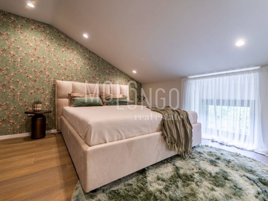 Baška, Draga Bašćanska, prodaja dizajnerske kamene kuće u nizu, površine 128,55 m2, s uređenom okućnicom površine 100 m2, 4000 m od plaže i centra Baške. Kuća se sastoji od prizemlja s dnevnom sobom, kuhinjom, blagovaonom, hodnikom, stubištem, konobom površine 13,30 m2 i toaletom, prvog kata s dvije spavaće sobe, hodnikom, kupaonicom, toaletom, stubištem i terasom površine 4,90 m2 te mansarde s prostranom spavaćom sobom, hodnikom, kupaonicom i terasom površine 11 m2. Kvalitetna gradnja, klimatizacija, novi krov, dizajnerski namještaj, uređena okućnica, parkirno mjesto 30 m2.