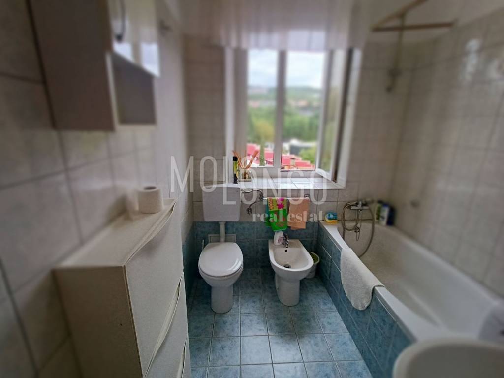 Prekrasan gospodski stan u Talijanskoj zgradi na 4. katu (nema lifta). Stan se sastoji od hodnika, garderobnog ormara, kupaone, dvije odvojene sobe (istok i zapad) i kuhinje s izlazom na zapadni balkon s kojega se pruža pogled na more i zelenilo. Moguće je, uz određene preinake izvesti 2s+db. Vrlo uredan i dobro održavan stan koji se prodaje djelomično namješten. Iznad stana je tavan, a drvarnice su izvan zgrade. Nova fasada i obnovljeni vrlo uredan krov. Prekrasne velike prostorije, visoki stropovi, balkon i puno svjetla, te fenomenalna pozicija čine ovaj stan idealnim, kako za život tako i za investiciju turističkog ili studentskog najma.