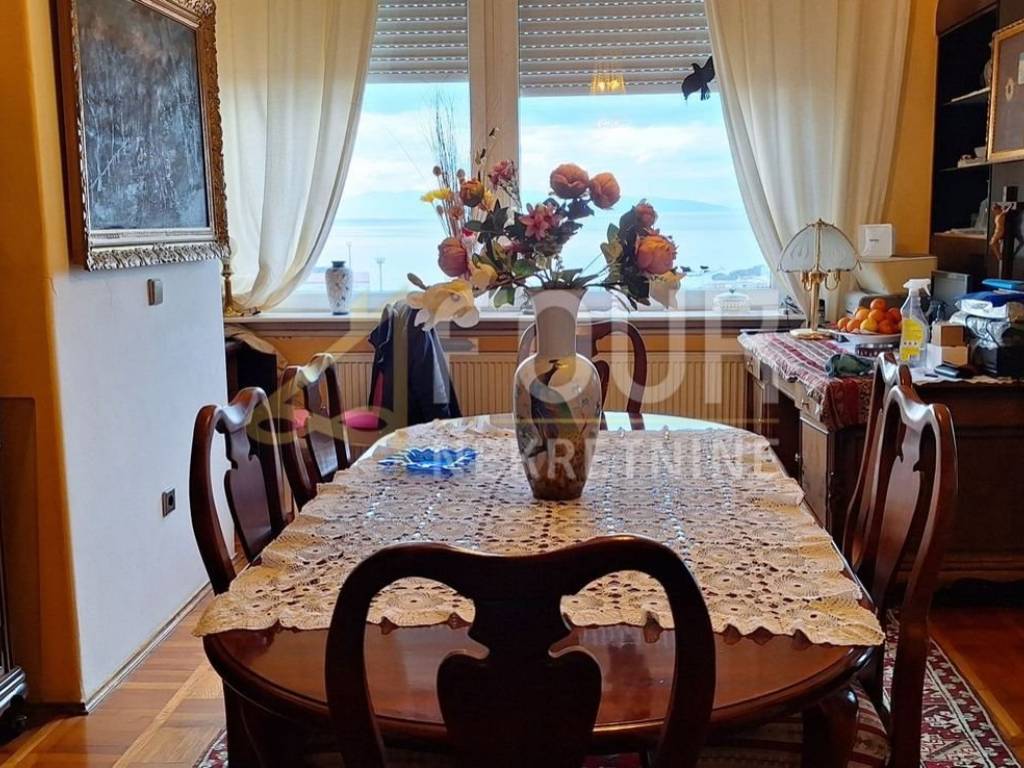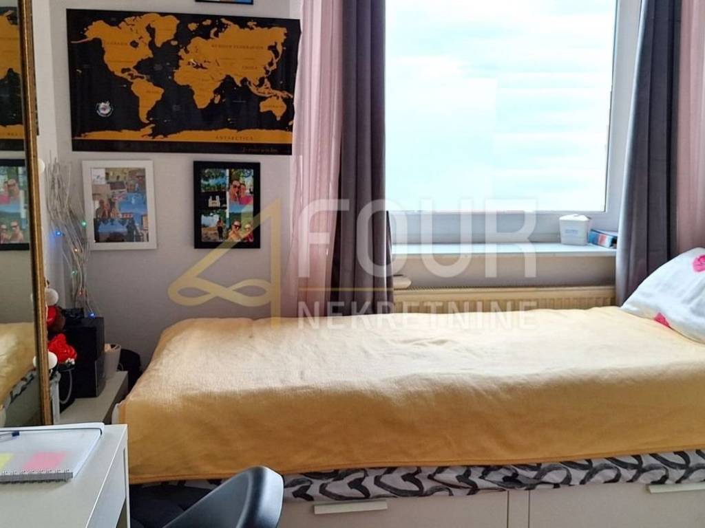 Proteže se na 173.73m2 te se sastoji od dva hodnika, kuhinje, 3 spavaće sobe, blagovaonice, dnevnog boravka, kupaonice, stepeništa, kupaonice, toaleta, dvije izbe i tri balkona s kojih se pruža nevjerojatan pogled na more! Također, stanu pripadaju garaža i spremište.