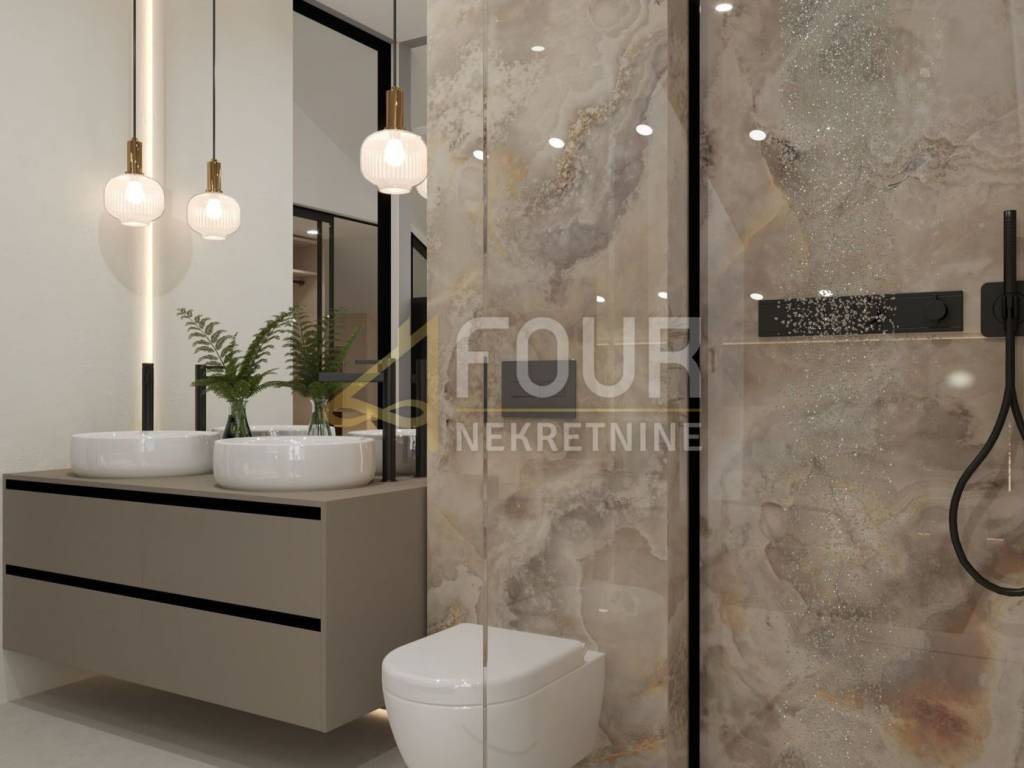 Ova novogradnja, površine 136.81m2, ističe se izvrsnim rasporedom prostorija i visokokvalitetnom gradnjom.