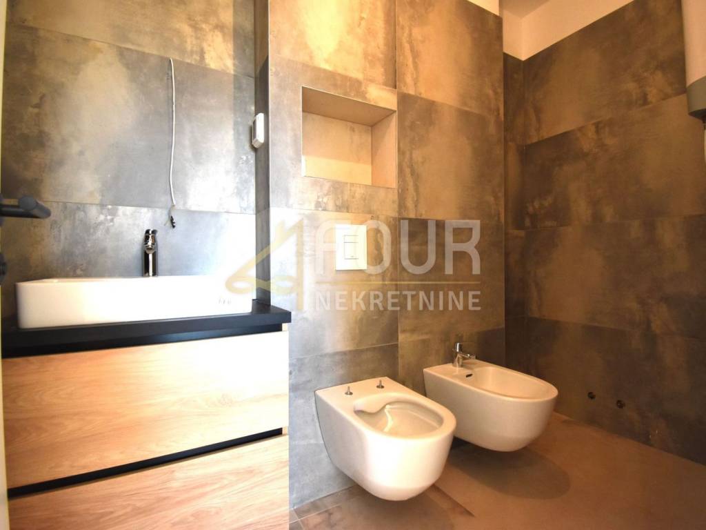 Ovaj prostrani stan, dobrog rasporeda proteže se na 100m2 te se sastoji od kuhinje s blagovaonicom i dnevnim boravkom koji ima izlaz na terasu, hodnika, 3 spavaće sobe, od kojih jedna ima kupaonicu te još dvije kupaonice.