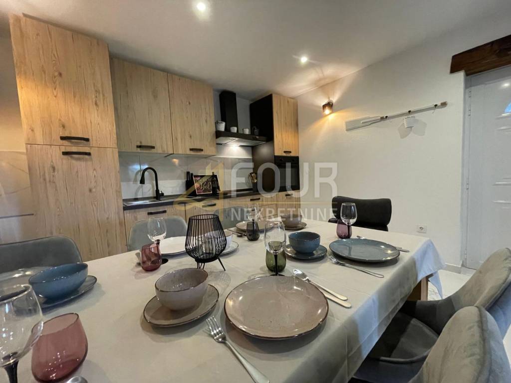 Ovaj objekt iznimne funkcionalnosti s raskošnim dvoetažnim četverosobnim stanom s dnevnim boravkom, bazenom i konobom za druženja, predstavlja idealanu nekretninu za obiteljski život ili kao investicija u turizam.