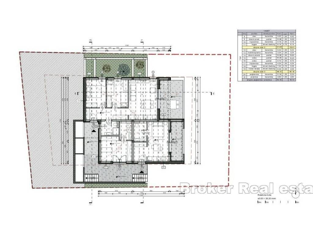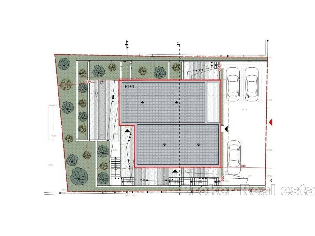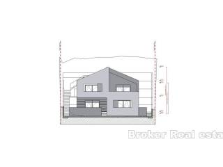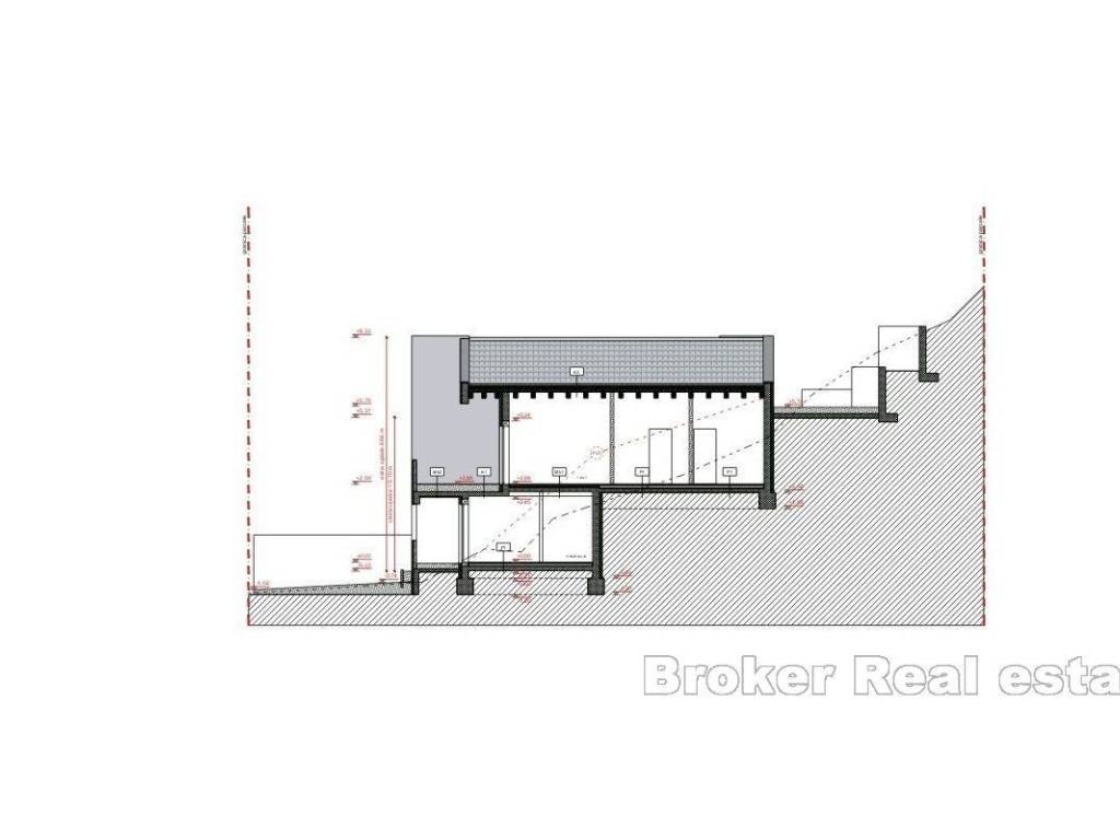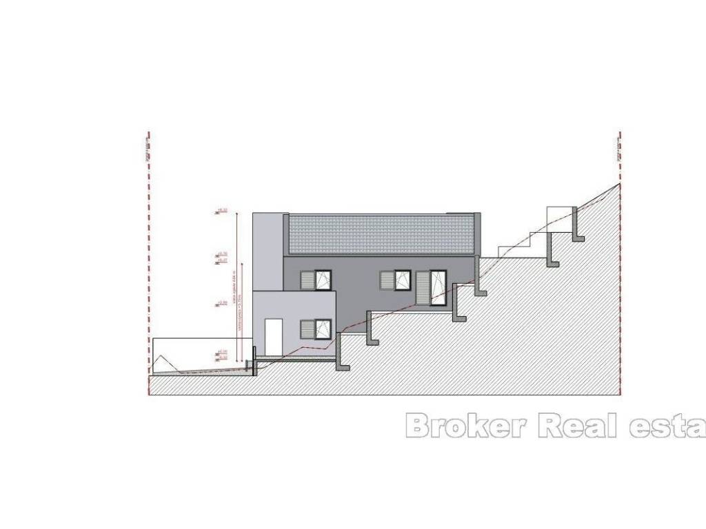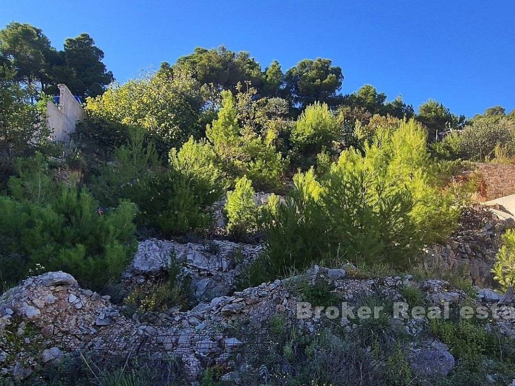 Građevno zemljište s projektom za gradnju, smješteno na sjevernoj strani otoka Brača. Zemljište je ukupne površine od 486 m2, pravokutnog je oblika te kaskadnog tipa, sa jednostavnim pristupom sa glavnih prometnica. U cijenu zemljišta ulazi i pravomoćna građevinska dozvola za gradnju kuće tlocrtne površine 143 m2, za 3 stambene jedinice. Zemljište je većim dijelom pripremljeno za gradnju, odnosno, plaćeni su komunalni doprinosi i napravljeni iskopi u većoj mjeri. Zemljište se nalazi na mirnoj poziciji bez puno susjeda u blizini, udaljeno je od mora 400 metara kao i od centra mjesta sa svim dodatnim sadržajima. Buduća kuća će imati parcijalni pogled na more sa gornjih etaža.