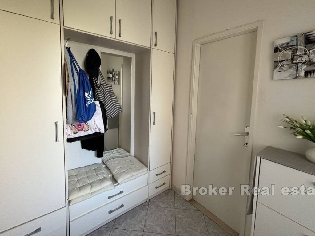 Dvosoban namješten stan na mirnoj lokaciji, ukupne površine 95,67 m², na prodaju. Smješten je na prvom katu kuće i sjeverno-južne je orijentacije. Sačinjavaju ga dva hodnika, ostava, dvije spavaće sobe, kupaonica, kuhinja, dnevni boravak te balkon i veranda. Stan je nedavno djelomično renoviran te se prodaje namješten i opremljen. Grijanje i hlađenje se odvija putem dva klima uređaja. Stan nema vlastito parkirno mjesto, ali je isto uvijek slobodno ispred samog objekta. Odlikuje ga dobra lokacija i blizina centra grada te svih sadržaja (dućan, ljekarna, kafić, šoping centar…) zbog čega je idealan izbor za urbano življenje.