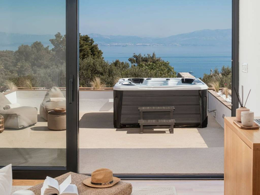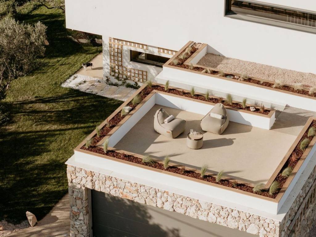 Luksuzna vila na otoku Šolti stambene površine 320 m2 položena na zemljištu od 1800 m2 predstavlja spoj suvremenog dizajna, luksuza i prekrasnog mediteranskog okruženja, nudeći svojim stanarima vrhunski životni stil. Ova vila nudi nevjerojatan pogled na more te kombinira moderne sadržaje s elementima prirode, poput maslina koje su integrirane u unutarnji prostor dnevnog boravka. Ulaz u vilu otkriva prostrani dnevni boravak obasjan prirodnim svjetlom zahvaljujući velikim staklenim površinama koje pružaju predivan pogled na more. Maslinovo stablo u sredini dnevnog boravka stvara oazu mira i dodaje jedinstveni element prirode u unutrašnji prostor. Namještaj u dnevnom boravku je modernog dizajna, udoban i elegantan, stvarajući savršen prostor za opuštanje i druženje. Kuhinja, blagovaonica i dnevni boravak integrirani su u otvoreni koncept, stvarajući fluidan i prostran prostor za obiteljske večere ili zabave s prijateljima. Velika staklena klizna vrata omogućuju izravan pristup vanjskim prostorima vile. Na prvom katu nalaze se 3 sobe, radna soba, garderoba, 3 kupaonice, te velika terasa s jacuzzijem. Na vanjskom dijelu vile nalazi se prostrana terasa s prekrasnim bazenom koji pruža osvježenje tijekom toplih ljetnih dana. Luksuzna sauna dodatno upotpunjuje wellness doživljaj za stanare vile. Okućnica je ukrašena mediteranskim biljem i maslinama, stvarajući opuštajuću atmosferu i pružajući osjećaj privatnosti. Vila također nudi pogled na kristalno čisto more koje okružuje otok Šoltu, pružajući spektakularne prizore i nezaboravne zalaske sunca. Ova moderna luksuzna vila s bazenom, saunom i prekrasnim pogledom na more predstavlja savršen spoj udobnosti, elegancije i prirode te pruža svojim stanarima jedinstveno iskustvo života na otoku.
