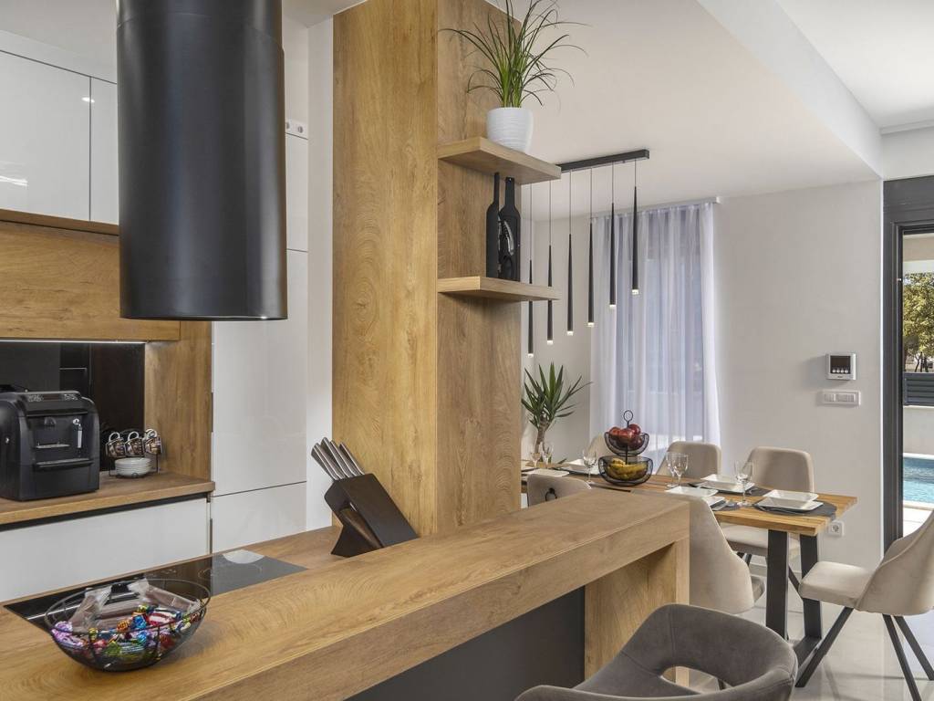 Ekskluzivna moderna vila, sagrađena 2022. godine, smještena je u mirnom okruženju jednog od najpoželjnijih priobalnih područja. S površinom od 466 m2, raspoređena na tri etaže (podrum, prizemlje i prvi kat), ova impozantna rezidencija nudi ukupno 225 m2 stambenog prostora. Osvježavajući spoj elegantnog dizajna i funkcionalnosti čini je idealnim mjestom za opuštajuće godišnje odmore ili uživanje u udobnom stalnom boravku. Na prizemlju se prostire dobro opremljena kuhinja, prostrana blagovaonica te dnevni boravak koji se povezuje s vanjskom natkrivenom terasom putem klizne stijenke – savršena postavljena za druženje, pogotovo tijekom ljetnih mjeseci. Prvi kat nudi tri prostrane spavaće sobe, svaka s vlastitom kupaonicom i izlazom na balkon, pružajući intimnost i udobnost stanarima. U podrumu vile nalazi se prava wellness oaza s saunom i teretanom. Dragulj udobnosti čini neodoljiva krovna terasa do koje se dolazi unutarnjim stepenicama s koje se pruža spektakularan pogled na more i okolicu. Dvorište vile, ograđeno radi privatnosti, nudi uživanje u grijanom bazenu veličine 32 m2, sunčalištu, kaminskom kutku, natkrivenoj terasi te parkiralištu za dva automobila. Za dodatnu udobnost, vila je opremljena klima uređajima za grijanje i hlađenje, dok podno grijanje pruža toplinu u dnevnom boravku, kupaonicama i teretani. Ova elegantna nekretnina dolazi potpuno namještena, pružajući sofisticiran i udoban životni prostor. Grad Zadar udaljen je samo 15 minuta vožnje, dok se Zračna luka Zadar nalazi na 30 minuta automobilom, čineći ovu vilu savršenim spojem luksuza i praktičnosti.