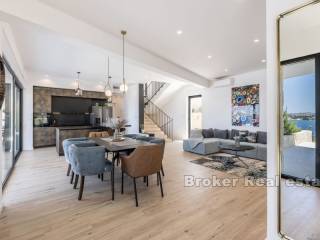 Na prodaju je luksuzna vila na odličnoj lokaciji u blizini Rogoznice. Naglasak na modernom dizajnu s atraktivnim interijerom kao i eksterijerom čine vilu pravom prilikom. Vila se sastoji od 2 etaže koje su opremljene vrhunskim namještajem. Ukupne je stambene površine 270 m2 te se nalazi na površini zemljišta od 550 m2. Na prvoj etaži nalazi se toalet, kuhinja s blagovaonicom te prostrani dnevni boravak. Iz dnevnog boravka direktno se izlazi na vanjsku terasu na kojoj se nalazi bazen okružen vanjskim namještajem a iz koje se može uživati u prekrasnom pogledu na more i otoke. Na drugoj etaži vile nalaze se tri spavaće sobe s vlastitim kupaonicama. Za potpuno uživanje osim bazena prisutan je i vanjski roštilj s blagovaonicom. Iz većine prostorija u vili pruža se neometani pogled na more. Vili pripada tri parkirna mjesta te je na prodaju potpuno namještena. Vila je udaljena od mora 175 metara te 2,67 km zračne linije od centra Rogoznice. Izvrsna prilika za investiciju bilo da se radi o ulaganju za turizam ili za korištenje u privatne svrhe.
