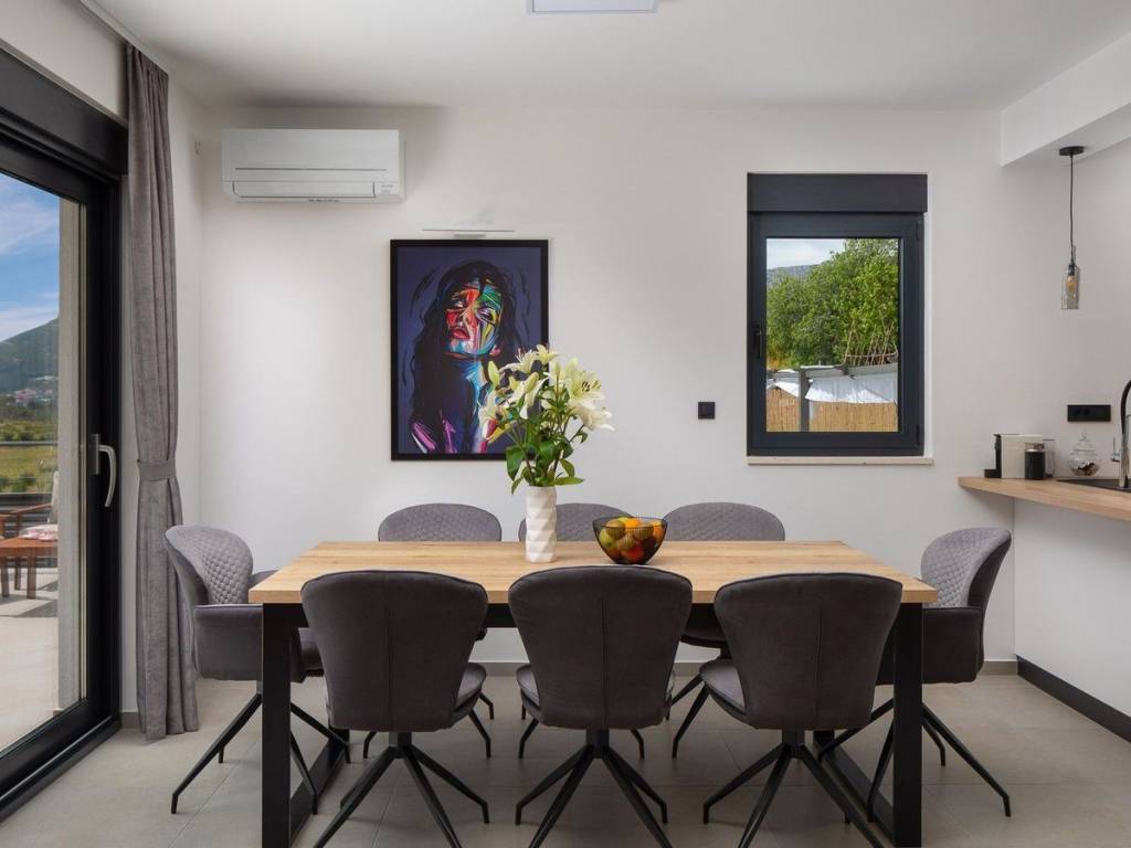 Predstavljamo jedinstvenu vilu s prostranim dvorištem i grijanim bazenom, smještenu u mirnom području s prekrasnim pogledom na more. Ova vila pruža savršenu ravnotežu između luksuza i privatnosti, okružena zelenilom koje se prostire na 710 m², dok stambeni prostor iznosi 130 m². Cijela vila je ograđena, pružajući mirnu oazu s dva do tri vanjska parkirna mjesta. U podrumu se nalazi mala teretana, igraonica i prostor za bazensku opremu, osiguravajući dodatnu udobnost. Unutrašnjost vile odiše prostranošću i udobnošću. Sastoji se od hodnika, spavaće sobe s vlastitom kupaonicom, prostranog dnevnog boravka, potpuno opremljene kuhinje s blagovaonicom te izlaza na grijani bazen i sunčanu terasu. Na prvom katu nalaze se tri dodatne spavaće sobe, od kojih svaka ima izlaz na balkon s otvorenim pogledom na more, te dvije moderne kupaonice. Eksterijer vile oduševljava natkrivenom terasom s roštiljem, grijanim bazenom, obiljem zelenila i posebnim dječjim igralištem, stvarajući savršeno okruženje za opuštanje i uživanje u prirodi. Idealna za one koji traže mir, privatnost i luksuz u prekrasnom mediteranskom okruženju. Savršeno za one koji cijene mir, privatnost i luksuz u prekrasnom zelenilu.