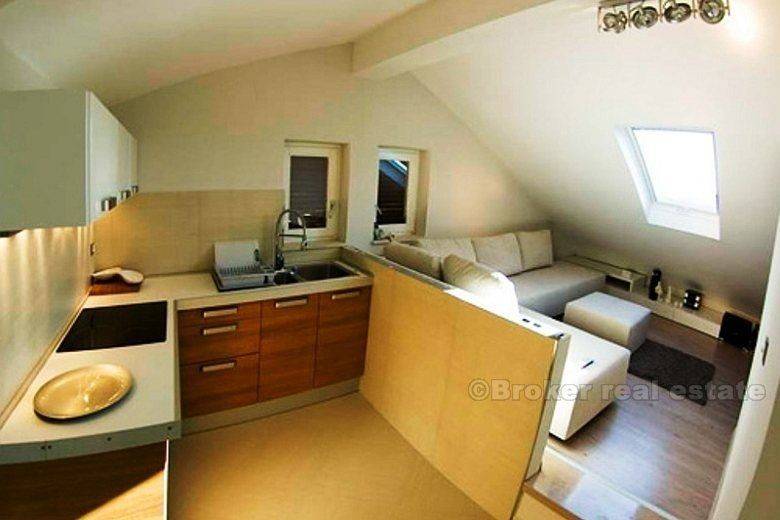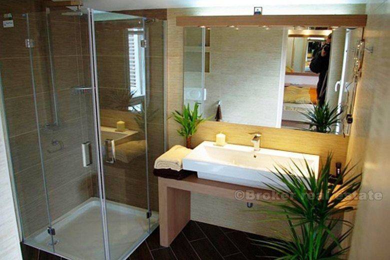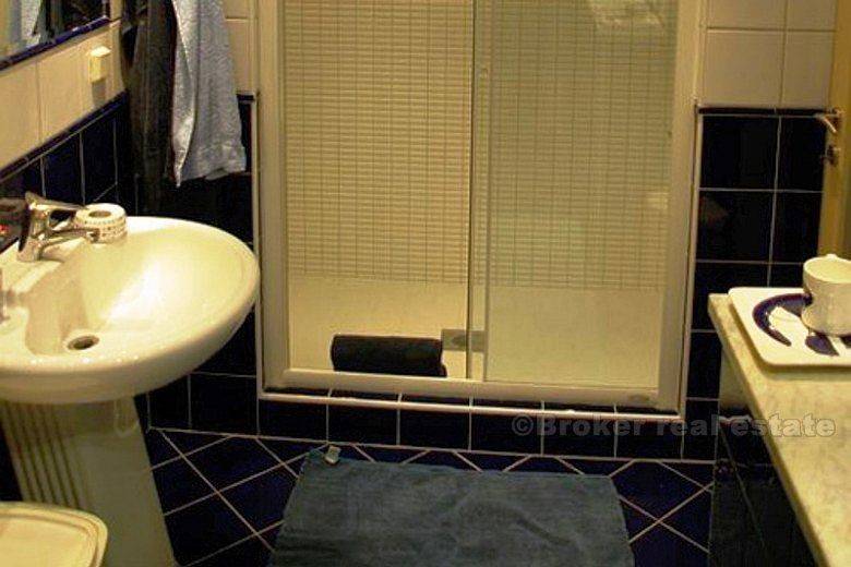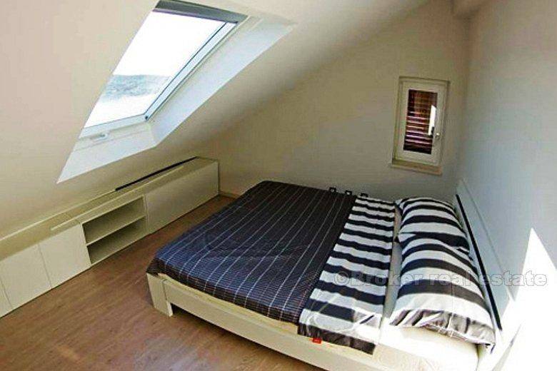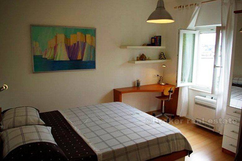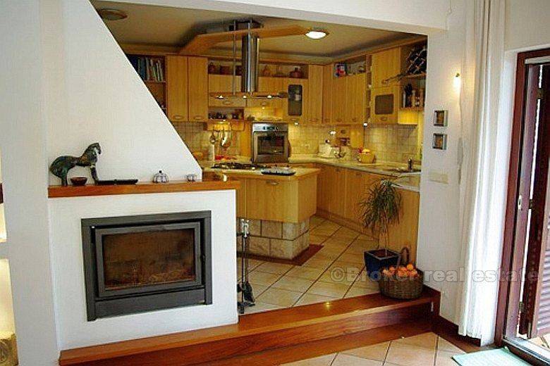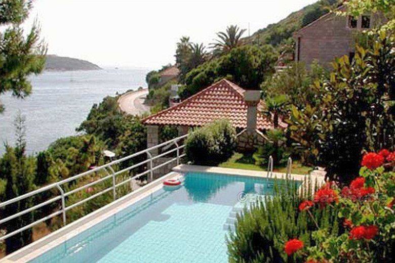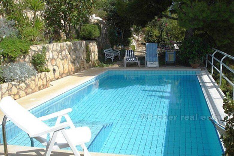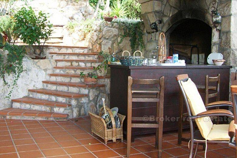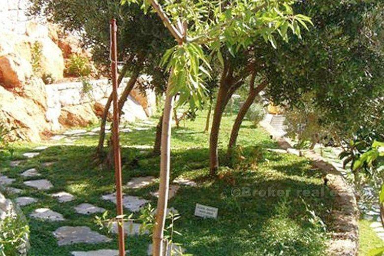 Vila se nalazi na zemljištu od 4000 četvornih metara s kamenim vrtovima, maslinama, stablima naranče, stablima limuna, borovom šumom i drugim mediteranskim biljem. Villa se sastoji od 4 dvokrevetne spavaće sobe i 4 kupaonice, velike kuhinje s blagovaonicom i dnevnog boravka opremljenog LCD TV-om s 50-inčnim LCD zaslonom. Na drugom katu se nalazi zaseban apartman do kojeg se može doći iz kuće, te također ima poseban ulaz iz vrta. Ovaj apartman je dio vile i sastoji se od dvokrevetne spavaće sobe, kuhinje, dnevnog boravka s mogućnošću smještaja za 2 osobe, kupaonice s jaccuzzi i blagavaonom. Interijer je vrlo moderan, funkcionalan i opremljen visokim standardima: klima uređaji, bežični pristup internetu, SAT TV, ima i veliki bazen i nekoliko terasa za sunčanje. Vrtovi su osvijetljeni tijekom noći. Jedna od terasa je natkrivena, tu se nalazi ljetna kuhinja s roštiljem i blagovaonicom za 12 osoba. Ispred kuće se nalazi garaža i parking za 4 automobila.