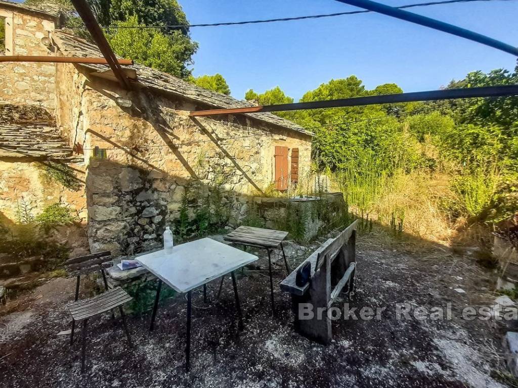 Nekretnina se nalazi u starom dijelu pitoresknog mjesta u centru otoka Hvara. Sastoji se od nekoliko kamenih objekata povezanih dvorištem, uključujući glavnu kuću s konobom u prizemlju i stambenim dijelom na prvom katu; dodatne veće prizemnice pored glavne kuće; te većeg kamina na drugoj strani dvorišta s malom dodatnom prizemnicom u produžetku. Uz prostor dvorišta, nekretnini pripada parcela od 219 m² na zapadnoj strani posjeda (potencijalni prostor za bazen) i parcela od 83 m² na sjevernoj strani. Neuređeni javni put (makadam) vodi do druge parcele koja se povezuje s glavnom cestom. Mirna lokacija s pogledom na mjesto. Izvrsna opcija za kupce koji preferiraju tradicionalne kamene nekretnine.