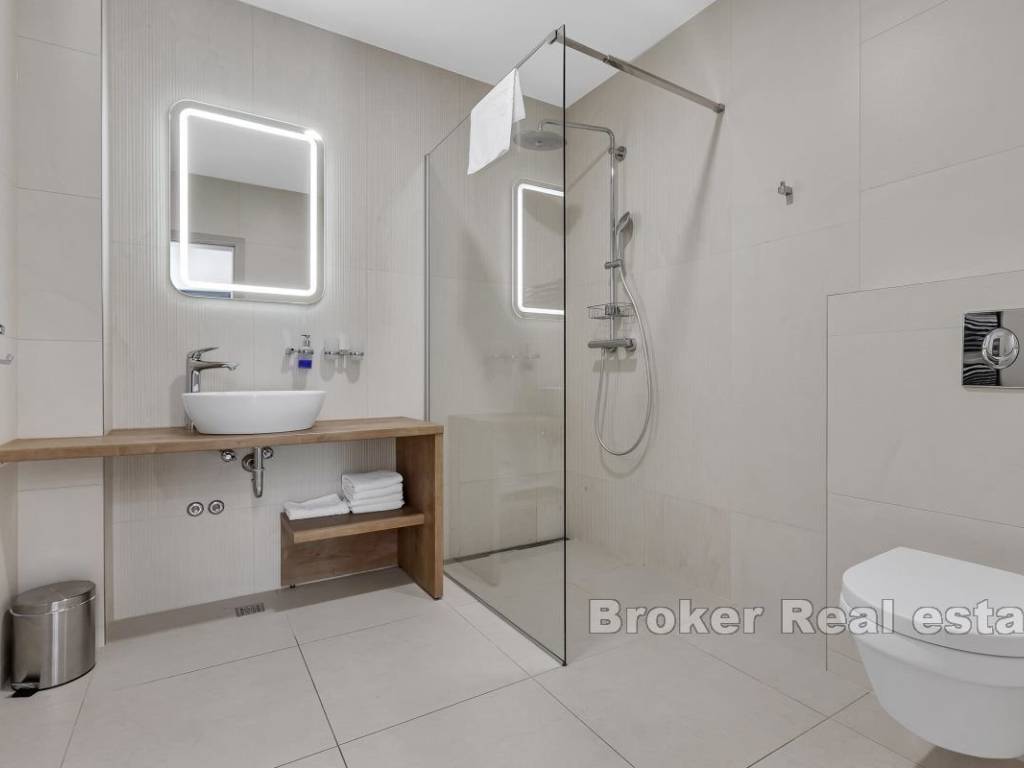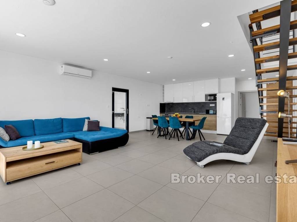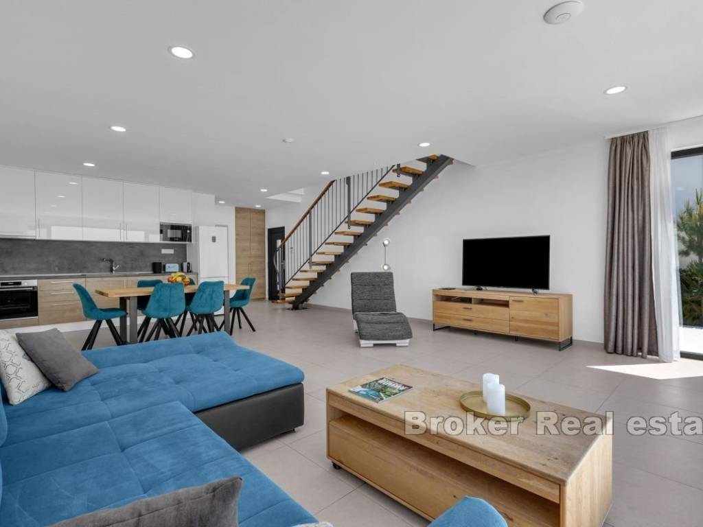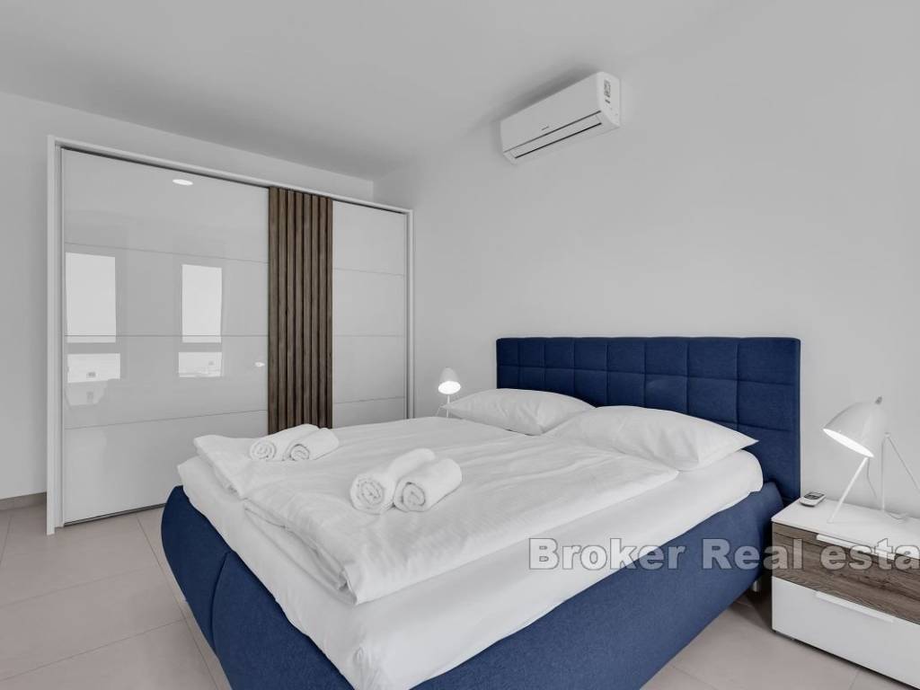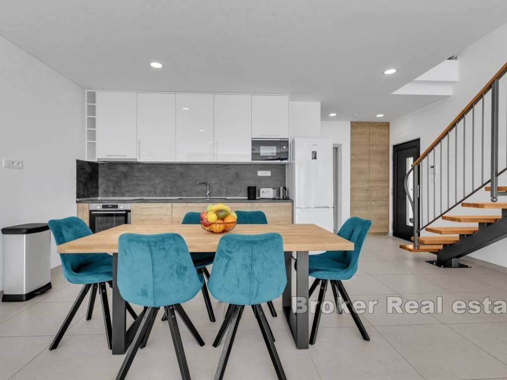 U prodaju se nudi ograđena vila za odmor, ekskluzivna vila koja ima panoramski pogled na kristalno more i nalazi se u blizini mjesta Makarska, pored Omiša i Splita. Pozicionirana je na južnoj strani te odiše najvišom udobnošću, modernim interijerom i elegantnim dizajnom. Nudi idealan moderan ambijent uz jedinstven pogled na mediteransku obalu. Uz puno pozornosti u detaljima interijera i eksterijera, moderne tehničke opreme, najnovijih građevinskih materijala s čarobnim dodirom glamura, ova vila pruža luksuzni odmor za svaku obitelj. Izgrađena je na dvije etaže. Sastoji se od 4 prostorne spavaće sobe, 3 kupaonice, bazena i kvalitetnog vrtnog namještaja, balkona te otvorene i djelomično natkrivene terase i 4 vanjska parkirna mjesta. U prizemlju se nalazi prostrani dnevni boravak za večernja druženja, blagovaonica i kuhinja iz koje možete izaći na djelomično otvorenu terasu za opuštanje s bazenom. Nalazi se i 1 kupaonica. Vila je potpunosti klimatizirana te se naziva pametna kuća jer sva tehnika funkcionira po digitalnom principu. Ima sustav automatskog navodnjavanja okoliša, postavljene video kamere i podno grijanje. Na prvom katu nalaze se 4 prostrane spavaće sobe s 2 kupatila. Objekt se prodaje sa svim opremljenim i namještenim visokokvalitetnim interijerom i eksterijerom (kućanskim aparatima, flat screen televizorima, led rasvjetom,sustavom za automatsko hlađenje itd). Vlasnik daje u vlasništvo sve svoje portale i stranice na kojima je iznajmljivao godinama vilu tijekom ljetne sezone. Nekretnina je jedinstven izbor zbog južne pozicije/mediteranske klime, panoramskog pogleda na čisto more, arhitekture objekta i brojnih pješčanih plaža u blizini. Mjesto je s udaljenošću do najbližeg većeg grada Splita od 50 km i zračne luke Split od 70 km.