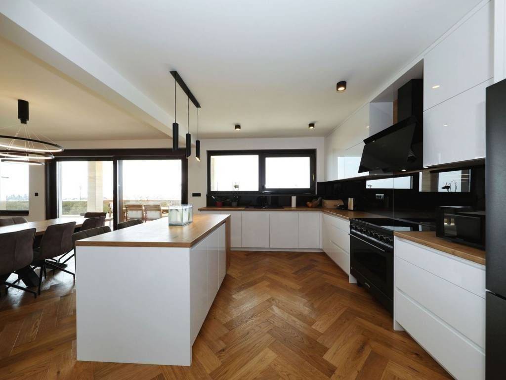Prodaje se luksuzna vila s panoramskim pogledom na more. Ukupne stambene površine 380 m2 smještena je na parceli površine cca 5100 m2. Prostrana parcela doista pruža osjećaj privatnosti i intime, dopuštajući stanovnicima da uživaju u vlastitom komadiću raja bez ikakvih smetnji i buke užurbanog svijeta. Iskorišten je puni potencijal suterenskog prostora, velika konoba s unutrašnjim kamenim roštiljem čini spoj tradicionalnog i modernog dizajna stvarajući savršenu atmosferu za opuštanje i druženje.  Prizemlje se sastoji od ulaznog hodnika, kupaonice i tri prostrane moderno opremljene spavače sobe. Unutarnjim stepeništem pristupa se na prvi kat kojeg čini open space prostor s dnevnim boravkom, blagovaonom i kuhinjom, dvije spavaće sobe, dvije kupaonice i ostave. Vila ima izlaz na krovnu terasu s koje se pruža očaravajući pogled na panoramski pogled na more i otoke kao i na svaki rub grada Zadra. Prilikom izgradnje, korišteni su isključivo najkvalitetniji materijali, namještaj i oprema je praćena istim standardima osiguravajući neometani užitak u boravku. Podno grijanje se nalazi u svakoj sobi dok se klima uređaji koji se nalaze u svakoj prostoriji. Vanjski parking je osiguran za veći broj automobila, u garaži ima mjesta za dva automobila. Ova vila nije samo dom, već i oaza mira, luksuza i apsolutnog uživanja.