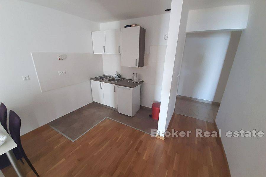 Jednosobni stan, na prodaju, ukupne stambene površine od 67 m2, smješten u prvom redu uz more u slikovitom malom turističkom mjestu na Makarskoj rivijeri. Apartman je smješten na prvom katu stambeno-poslovne zgrade te se prodaje djelomično namješten. Sastoji se od prostranog hodnika, spavaonice, velike kupaonice, dnevnog boravka i kuhinje, te dvije terase sa pogledom na more. Obzirom na svoju jedinstvenu poziciju, apartman predstavlja odličnu poslovnu opciju za iznajmljivanje. Javni parking se nalazi nedaleko apartmana, a postoji opcija u dogovoru s vlasnikom za privatno parking mjesto udaljeno 50-ak metara od apartmana.