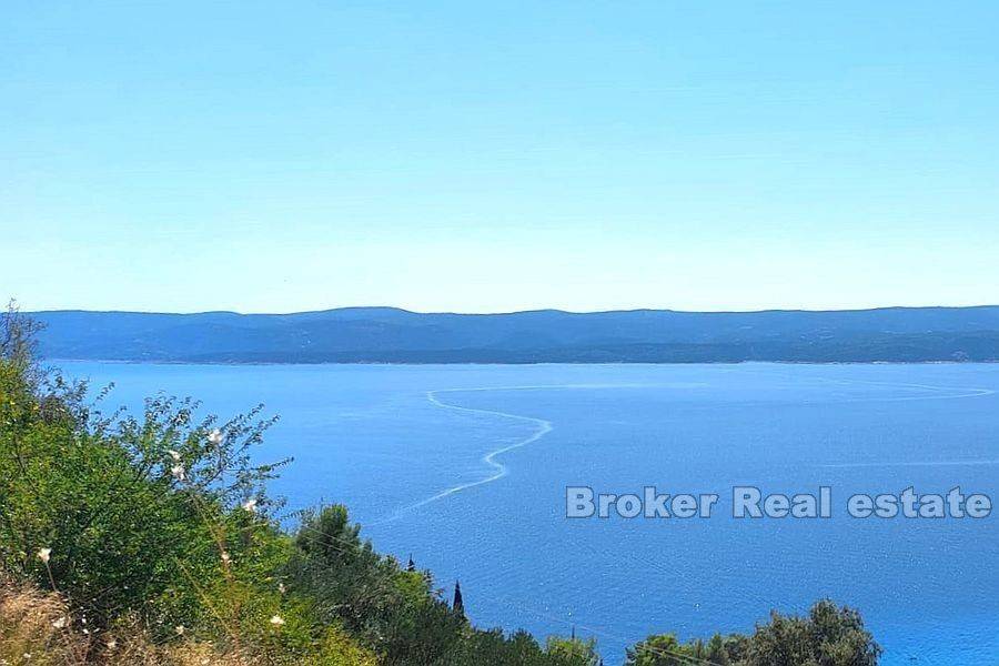 Građevinsko zemljište s pogledom na more, površine 411 m2, smješteno u malom mjestu nedaleko od grada Omiša. Zemljište pozicionirano na uzvisini u mirnom i prirodnom okruženju s otvorenim pogledom na more, te ima asfaltiran pristupni put, kao i priključke za vodu i struju u neposrednoj blizini. Parcela se prodaje zajedno s građevinskom dozvolom za troetažnu villu s bazenom. More je udaljeno 300 metara od zemljišta, dok se trgovina, restoran i kafić i slični sadržaji nalaze na udaljenosti od nekoliko minuta vožnje. Mir i tišina koju nudi lokacija zemljišta, kao i pogled te blizina mora i osnovnih sadržaja, čine ovo zemljište pogodnom za izgradnju kuće za cjelogodišnje življenje ili kuće za odmor.