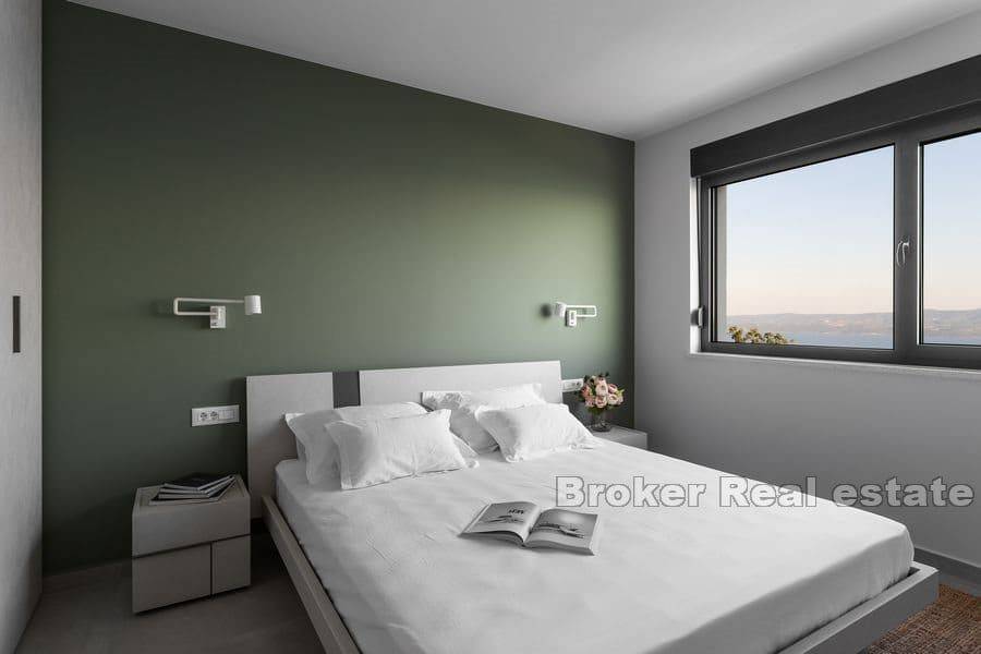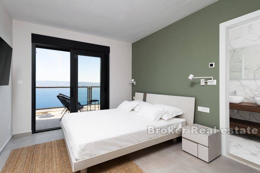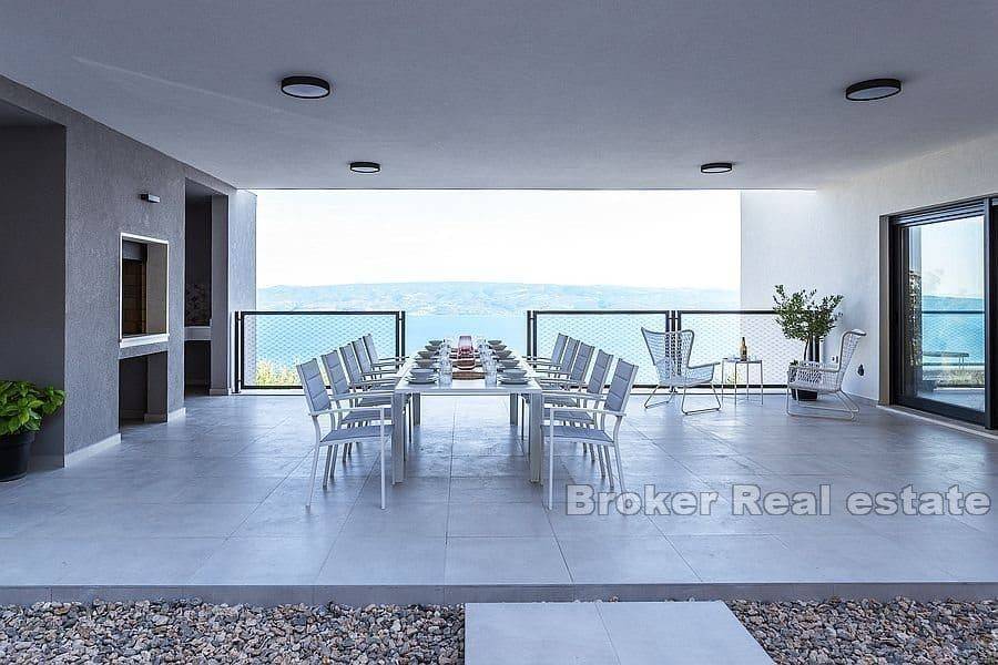Na prodaju je izuzetna nekretnina na odličnoj mirnoj lokaciji u blizini Omiša. Vila se sastoji od 2 etaže. Ukupne je stambene površine 173 m2 te se nalazi na površini zemljišta od 1848 m2. Na donjoj etaži u prizemlju nalazi se toalet, ostava, kuhinja s blagovaonicom i dnevnim boravkom s izlazom na terasu na kojoj se nalazi vanjska blagovaonica i roštilj. Predivan bazen iz kojeg se pruža otvoreni panoramski pogled na more razlog je zbog kojeg ćete se odlučiti za kupnju. Na drugoj etaži vile nalaze se četiri spavaće sobe te 4 kupaonice. Opremljenost vile uključuje: podna i zidna klima, podno grijanje, rezervoar za kišnicu za zalijevanje, bio-jama za kanalizaciju, sustav grijanja bazena, automatsko doziranje (elektroliza) itd.. Vili pripada dva parkirna mjesta. Vila je udaljena od mora 850 metara, a od centra Omiša 6,5 km zračne linije. Odlična je ponuda budući da nudi povrat ulaganja.