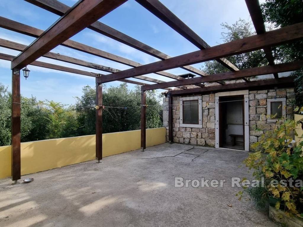 Nekretnina stambene površine od 375 m2 položena je na zemljištu od 520 m2. Kuća na ukupno tri etaže raspoređena je 6 stambenih jedinica te veliki prostor u suterenu. Dodatno postoji i pomoćni objekt koji ima funkciju ljetne kuhinje. Suteren od 100 m2 stambenog prostora je u Roh Bau stanju što nudi razne opcije uređenja za nove vlasnike. Prizemlje se sastoji od tri jednosobna apartmana opremljena kuhinjom, dnevnim boravkom, blagovaonicom, kupaonicom te terasom a otvorenim pogledom na more. Velika zajednička terasa u prizemlju nudi više nego dovoljno mjesta za uživanje u suncu i pogledu na more i okolnu prirodu. Na prvom katu nalaze se tri jednosobna apartmana opremljena kuhinjom, dnevnim boravkom, blagovaonicom, kupaonicom te terasom a otvorenim pogledom na more. U dvorištu se nalazi velika terasa koja vodi do pomoćnog objekta koji ima funkciju dimne kuhinje sa velikim roštiljem. Na zemljištu je dovoljno parkinga za devet automobila. Kuća je okružena netaknutom prirodom a mirna lokacija nudi savršen bijeg od gradske buke. Do mora i obližnjih plaža vodi puteljak dug oko 100 m. Nekretnina je savršeno rješenje za obiteljsku vikendicu ali i za investiciju u turističko poslovanje u kojem već bilježi uspjeh dugi niz godina. U blizini se nalaze svi sadržaji potrebni za život a trajektna luka je na 9 minuta vožnje od nekretnine. Otok Ugljan poznat je po bujnoj mediteranskoj vegetaciji, maslinicima i slikovitim plažama. Izvrsna povezanost sa Zadrom redovnim trajektnim linijama, čini ga atraktivnim za život i turizam, uz mirnu atmosferu otočkog života. Brojne prirodne ljepote, raznolike rekreativne mogućnosti i povoljni klimatski uvjeti čine ovaj otok idealnim za ljubitelje prirode i one koji žele pobjeći od gužve velikih gradova.