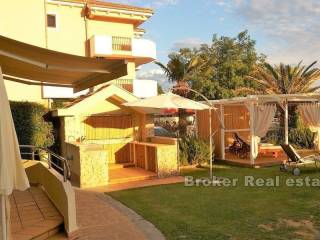 Luksuzan apartman, u blizini Zadra, 5 metara od mora sa vrtom i privatnim parkingom. Ekskluzivna nekretnina površine 212m nalazi se na prvom redu do mora te gleda na natkrivenu terasu i vrt površine 290m. Vrlo rijedak pogled koji se pruža iz nekretnine zadovoljit će svakog kupca. Apartman je, osim što je građen vrhunskim materijalima, opremljen visoko kvalitetnim kućanskim aparatima u svakoj prostoriji. Sastoji se od četiri spavaće sobe, dvije kupaonice s wc-om, kuhinjom i blagovaonicom. U sklopu okućnice nalazi se jedno nenatkriveno parkirno mjesto i komin. Osim vanjskog parkinga, u cijenu je uključena i zatvorena garaža sa ostavom. Bitne lokacije poput supermarketa, ljekarne i bolnice se nalaze na udaljenosti unutar 3 kilometra. Apartman je idealan za obitelji ili u turističke svrhe zbog mirnog okruženja.