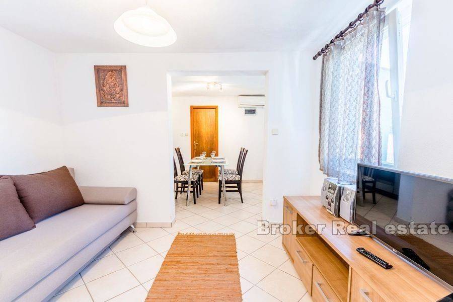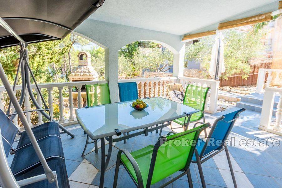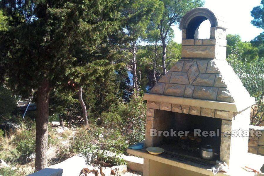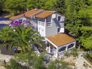 Kuća smještena u lijepoj uvali na otoku braču, s pogledom na more.  Kuća je površine 260 m2, a sastoji se od 4 jednosobna apartmana (kuhinja, dnevni boravak, spavaća soba, kupaonica, terasa) i jednog studio apartmana (15 m2 + natkrita terasa 20 m2).  Svaki apartmanima ima poseban ulaz.  Apartmani su kompletno uređeni, keramika i. klasa postavljena po svim apartmanima i terasama, izo-prozori, sigurnosna ulazna vrata, telefon, satelitska TV, septička jama.  Okućnica je površine 293 m2.  Kuća ima 4 parkirna mjesta.  Plaža je udaljena 50 m makadamskom stazom, gdje postoji i vez za brod.   Kuća ima građevinsku dozvolu i kategorizaciju (tri zvjezdice) za iznajmljivanje.