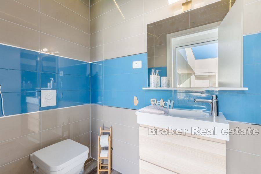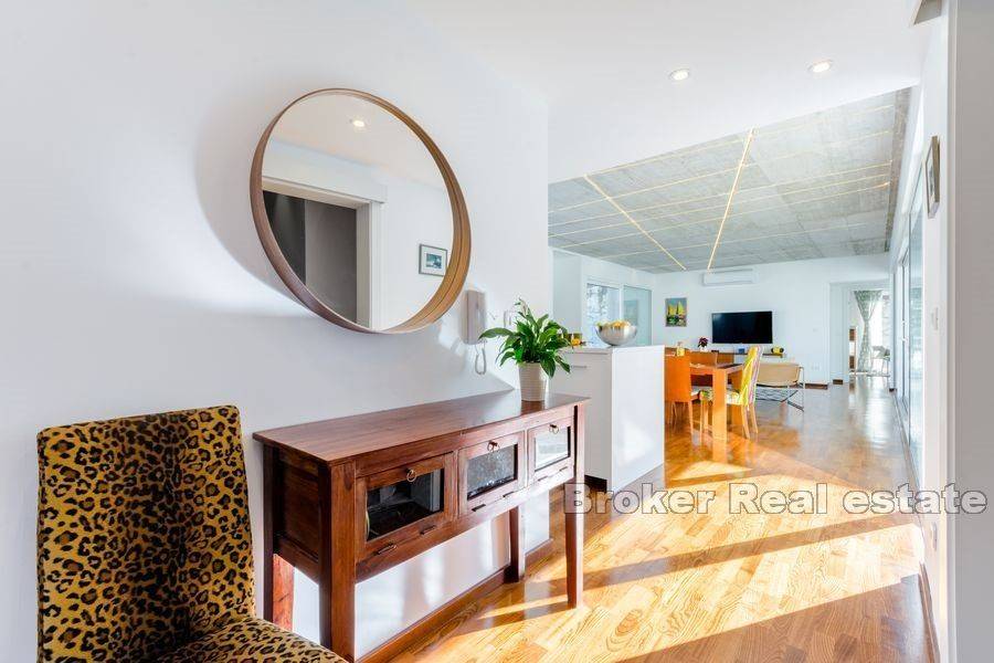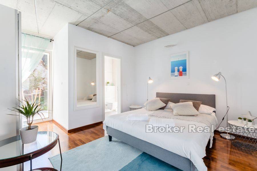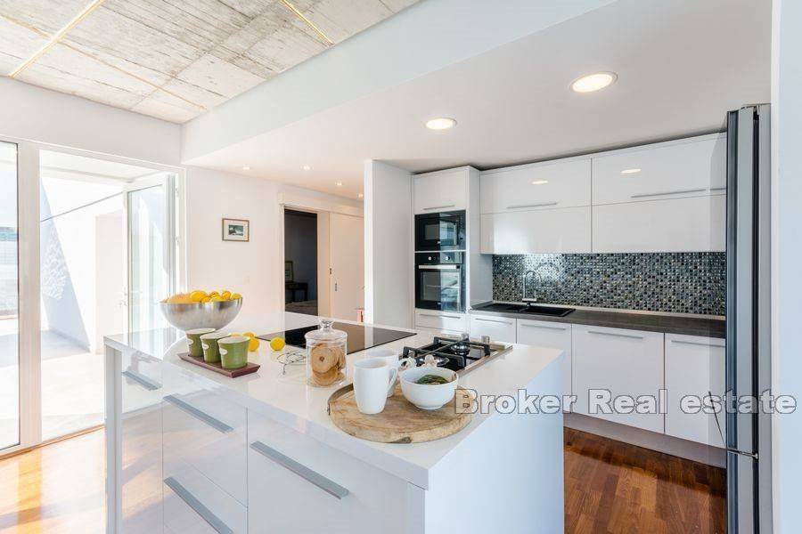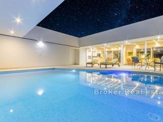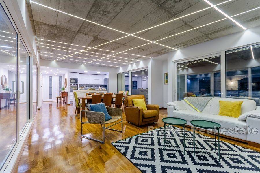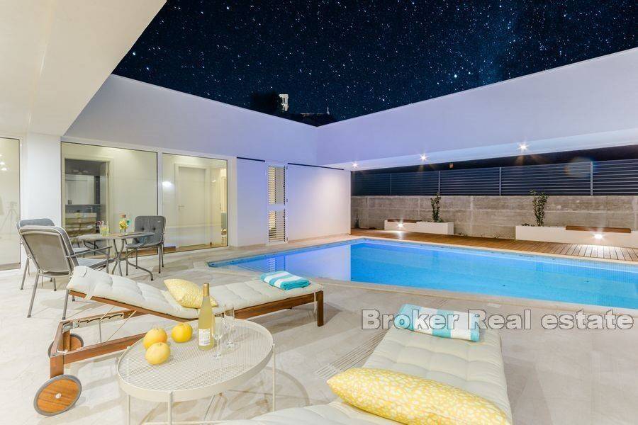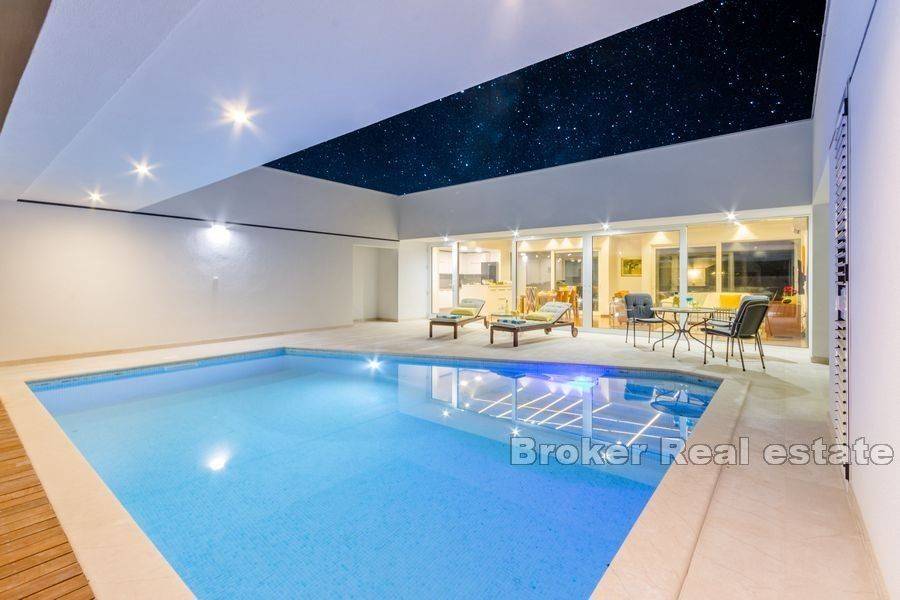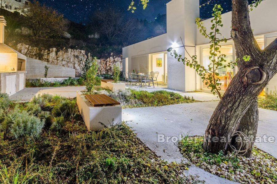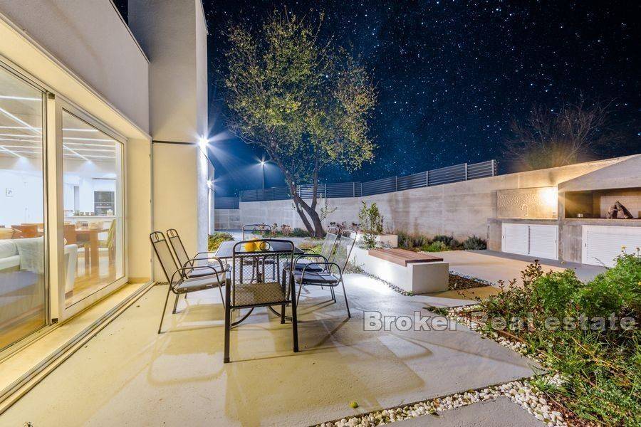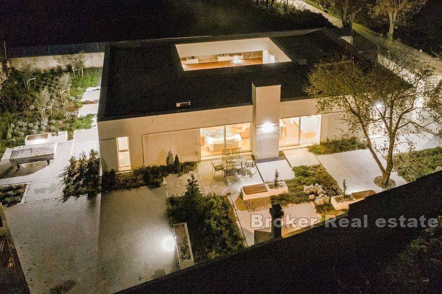 Na prodaju je moderno uređena vila ukupne stambene površine 220 m2 na otoku Braču na zemljištu površine 634 m2. Vila se sastoji od prizemne etaže koja predstavlja izuzetno arhitektonsko rješenje. Na prizemnoj etaži nalazi se pet spavaćih soba, tri kupaonice, toalet, kuhinja s blagovaonicom i dnevnim boravkom s izlazom na prostranu terasu na kojoj se nalazi bazen. Bazen okružuje vanjski namještaj kao i roštilj idealan za uživanje u ljetnim večerima. Glavna karakteristika vile je osigurana privatnost. Vrhunski materijali kao i pomno osmišljena rasvjeta unutar i van vile doprinose eleganciji nekretnine. Vila je sagrađena 2019. godine, a na prodaju je potpuno namještena. Nekretnini pripada jedno garažno te dva vanjska parkirna mjesta.  Vila je udaljena od mora 5,5 km zračne linije. Od Zračne luke Brač udaljena je 9,6 km.  Izvrsna je prilika za investiciju kojom bi se osigurao povrat uloga.