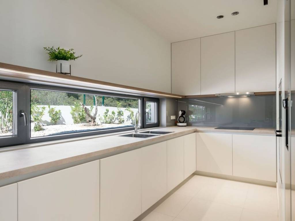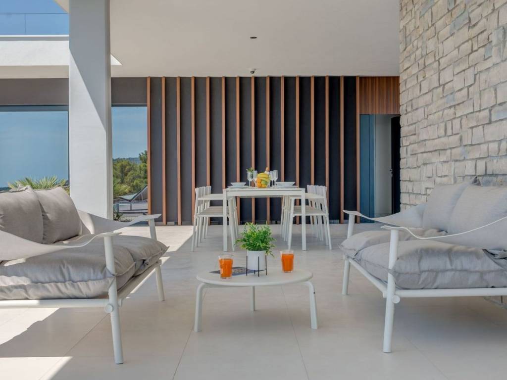 Na prodaju nudimo ovu izuzetnu vilu sa preljevnim bazenom na području Primoštena, suvremene moderne arhitekture, sa krasnim pogledom na more i otoke.   Vila površine 300m2 se prostire na zemljištu površine 850m2, te se sastoji od garaže u suterenu, prizemlja, te prvog kata. Na prizemlju se nalazi kuhinja, blagovaonica, gostinjski wc, praona rublja/ostava te prostrani dnevni boravak sa izlazom na prekrasnu terasu sa bazenom i sunčalištem, roštiljom. Internim skalama se ide na etažu prvog kata na kojoj se nalaze 4 spavaće sobe svaka sa svojom vlastitom kupaonicom. Vila pruža mir, privatnost, te je idealna za življenje, no s obzirom na atraktivnost iste, također je vrlo perspektivna za turističko iznajmljivanje.   Udaljenost od mora je 700 metara zračne linije, 500 metara od centra mjesta, te 40km od zračne luke Split.