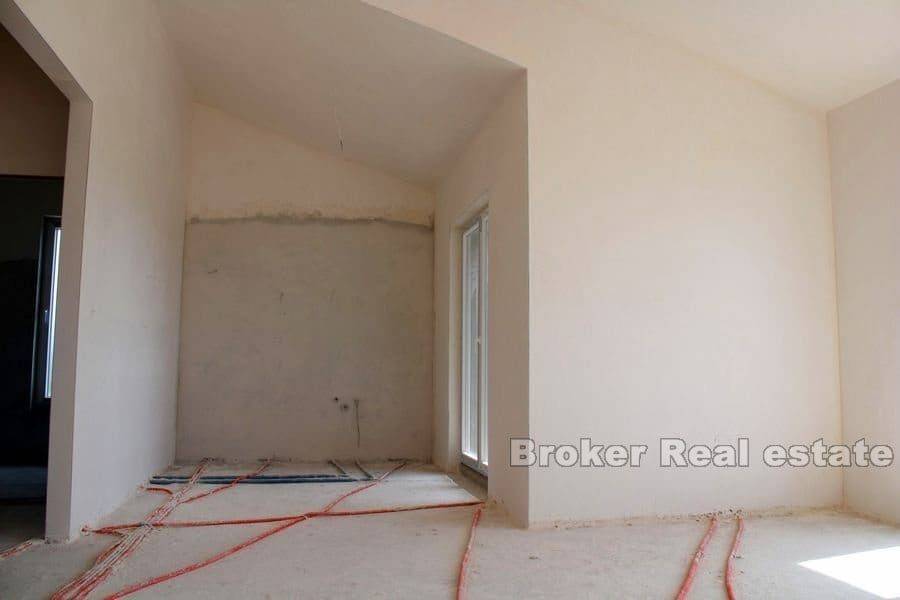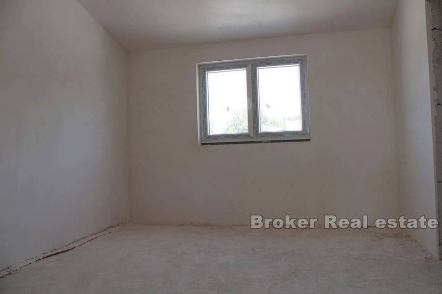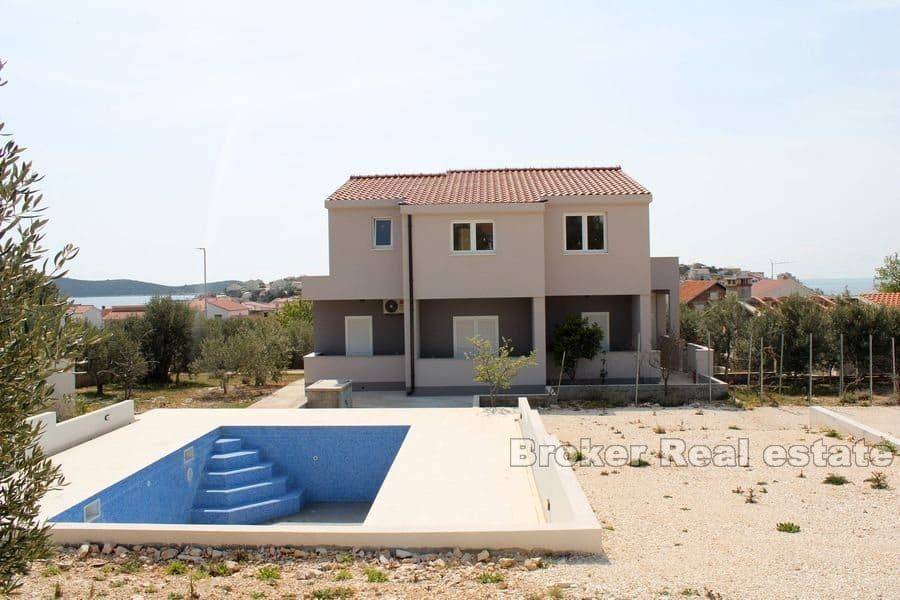 Prekrasna kuća s bazenom 100 m od mora u mirnom mjestu nadomak Rogoznice s prekrasnim pogledom na more. Nekretnina je okružena prekrasnom mediteranskom prirodom te je idealno mjesto za odmor i opuštanje. Kuća se sastoji od 2 etaže stambene površine 235 m2 i 1,430 m2 zemljišta. Na prvoj etaži se nalaze 2 apartmana od kojih se svaki sastoji od 1 sobe, kupatila, kuhinje, balkona, dnevnog boravka i blagavaonice. 2 etaža je nedovršena te se sastoji od dvije spavaće, dvije kupaonice, balkona, dvije terase, te prostranog dnevnog boravka s kuhinjom i blagovaonicom. S terasa se pruža prekrasan pogled na more. Nekretnina je opremljena bazenom, garažom, i klima uređajima. Kuća se nalazi u blizini svih potrebnih sadržaja poput restorana, cafe barova, prodavaonica s namirnicama, plaže. Nekretnina se nalazi na zemljištu od 1,430 m2 te pruža mogućnost gradnje još jednog objekta. Apartmani na prvoj etaži se prodaju s namještajem i kućanskim aparatima. Nekretnina ima uhodan posao iznajmljivanja apartmana u turističke svrhe.