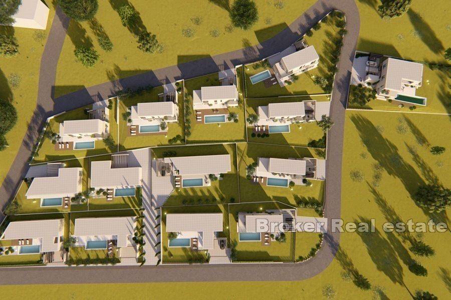 Moderna vila s bazenom smještena na 5 km od mora i 9 km od Poreča. Vila ukupne stambene površine 303 m2 položena je na zemljištu od 1323 m2 te je dio novoizgrađenog luksuznog kompleksa. Sastoji se od prostranog dnevnog boravka, kuhinje i blagovaonice, ostave, toaleta, vinarije i saune u prizemlju. Na katu se nalaze četiri spavaće sobe sa pripadajućim kupaonicama i natkrivena terasa. Postavljeno podno grijanje te je klimatizirana. Prostrana okućnica uređena je mediteranskim biljem dok je na razini prizemlja smješten bazen od 49 m2 sa sunčalištem. Posjeduje vise parkirnih mjesta.