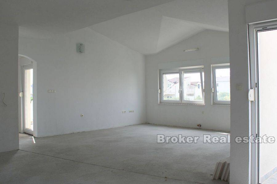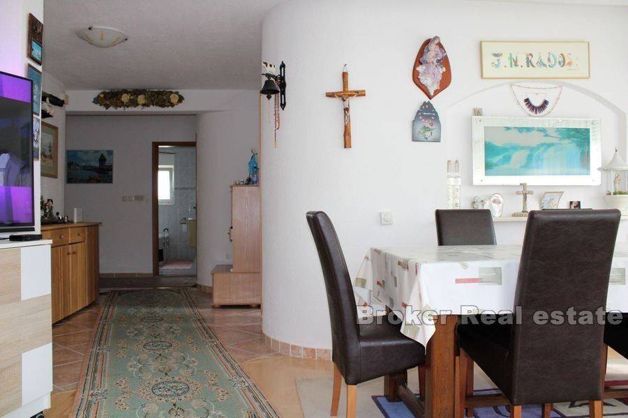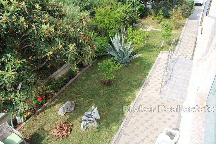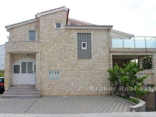 Ova izuzetna nekretnina nalazi se u neposrednoj blizini Splita i Trogira smještena na 100 m od plaže s pogledom na more stambene površine 350 m2 i zemljištem od 800 m2. U prizemlju se nalazi garaža iz koje se ulazi direktno u kuću i apartmana koji je nedovršen te se sastoji od kupaonice, dnevnog boravka, kuhinje i 2 sobe. Prvi kat se sastoji od dnevnog boravka, 3 sobe, kuhinje s blagavaonicom, kupaonicom, velikom vrtnom terasom. Na drugom katu koji je potrebno dovršiti nalaze se 3 spavaće sobe, kupaonica, 2 terase s pogledom na more. Kuća je opremljena centralnim grijanjem, klima uređajima, roštiljem, velikom garažom i vanjskim parkirnim mjestima. Okućnica pruža mogućnost ugradnje bazena. U neposrednoj blizini se nalazi prekrasna plaža s café barovima, restoranima, dućanima i ostalim sadržajima potrebnim za ugodan odmor ili za život cijele godine. Nekretnina se prodaje potpuno namještena.