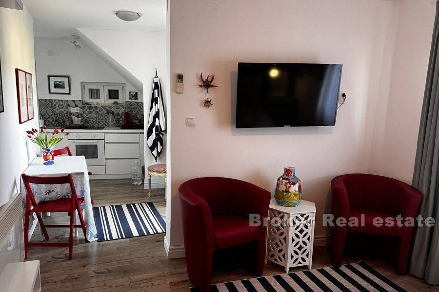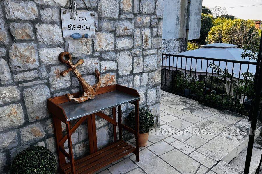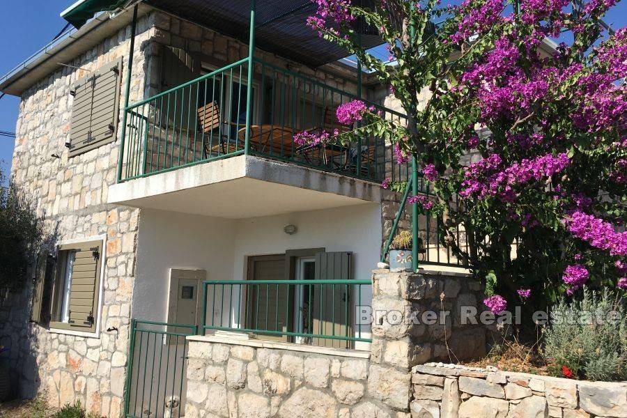Tradicionalana mediteranska kuća  stambene površine 70 m2 položena na zemljištu površine 51 m2 udaljena od mora i prekrasnih plaža svega 150 m. Kuća se prostire na dvije etaže povezane vanjskim stepenicama. Na prvoj etaži nalazi se  studio apartman koji se sastoji od  kuhinje s blagavaonicom, kupatilom te jednom sobom. Gornja etaža se sastoji od jedne sobe, kuhinje s blagavaonicom i terase s koje se pruža otvoreni pogled na more i otoke. Kuća se nalazi na atraktivnoj lokaciji na otoku Drveniku u blizini svih potrebnih sadržaja za život okružena mediteranskim biljem. Otok  odlikuju slikovite plaže, kristalno čisto more, odlična, ukusna hrana, kvalitetna vina…Kuća se prodaje potpuno namještena i odlična je prilika za uživati u miru otoka kao i za iznajmljivanje u turističke svrhe.