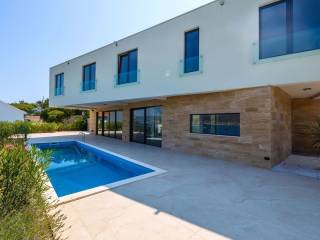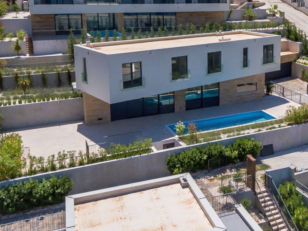 Novoizgrađena, jedinstvena vila s bazenom smještena na otoku Čiovu u drugom redu od mora. Vila stambene površine 326m2 je položena na zemljištu površine 728m2. Prostire se na tri etaže izgrađene na kaskadnom terenu te se sa svih etaža pruža očaravajući otvoreni pogled na more. Etaža prvog kata se sastoji od jedne kupaonice, otvorenog koncepta dnevnog boravka i kuhinje s blagovaonicom površine 75m2 s velikom staklenom kliznom stjenkom iz kojeg se izlazi na prostranu terasu. Terasa pruža otvoreni pogled na more, na njoj se nalazi osvjetljeni grijani bazen sa sunčalištem i vanjskim namještajem, zahvaljujući aluminijskim prozorima od poda do stropa impresivni otvoreni pogled na more ostaje vam na vidiku, čak i ako stojite u dnevnom boravku. Unutarnje stubište vodi do etaže drugog kata na kojem su smještene četiri spavaće sobe, tri kupaonice. U podzemnom dijelu se nalazi jedna kupaonica i funkcionalni prostor koji može poslužiti u svrsi fitnessa ili vinarije. Na uređenoj okućnici se nalazi garaža za jedno parkirno mjesto. Idealnim izborom je čini atraktivna lokacija vile koja oduševljava pogledom na more i obalu te sunčana terasa s grijanim bazenom koja nudi prostora za opuštanje u toplijim mjesecima.