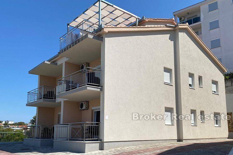 Jednosoban apartman s predivnim pogledom na more, nalazi se u mirnom naselju uz jadransku obalu, u neposrednoj blizini grada Trogira. Smješten u prizemlju šarmantne stambene kuće, ova nekretnina se prostire na ukupnoj stambenoj površini od 55 m2. Unutar apartmana dočekuje vas prostrani ulazni dio koji vodi do udobne spavaće sobe, opremljene kupaonice, kuhinje s blagovaonicom te dnevnog boravka. Posebna draž ovog prostora leži u mogućnosti izlaska na balkon iz dnevnog boravka, pružajući nezaboravan pogled na mirno plavetnilo Jadranskog mora. Apartman je potpuno namješten, čineći ga gotovim za život ili turistički najam. Dodatna pogodnost uključuje vanjsko parking mjesto, dok je na raspolaganju i zajednički roštilj smješten u lijepo uređenom dvorištu. Njegova izvanredna lokacija čini ovaj apartman idealnom prilikom za ulaganje u turistički najam. Također, udaljenost do međunarodne zračne luke, modernih marina te UNESCO-om zaštićenih gradova Šibenika i Splita, čini ga savršenim spojem udobnosti i lakoće pristupa atraktivnim destinacijama. U istoj stambenoj zgradi dostupan je identičan apartman smješten pored, pružajući mogućnost proširenja prostora ili investiranja u dodatnu nekretninu na istoj poželjnoj lokaciji.