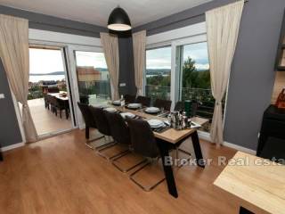 Na prodaju, kuća s bazenom i pogledom na more smještena na mirnoj lokaciji nedaleko od grada Šibenika, mora i plaže. Izgrađena na parceli od 462 m2, proteže se na dvije etaže. Kuća se sastoji od dva dvoetažna stana te je odlična kao kombinacija življenja i turističkog iznajmljivanja. Jedan apartman se sastoji od ostave, toaleta, dnevnog boravka i kuhinje s blagovaonicom u prizemlju te tri spavaće sobe i dvije kupaonice na prvom katu. Drugi apartman se sastoji od ostave i toaleta, dnevnog boravka, kuhinje i blagovaonice u prizemlju te dvije spavaće sobe i jedne kupaonice na prvom katu. Kuća ima ukupno pet spavaćih soba te može primiti 10 osoba. Iznajmljuje se ljeti turistički te ima odličnu popunjenost i ocjene gostiju. Prednost je svakako mirna lokacija ali i ograđeno dvorište s bazenom i sunčalištem idealno za ljetna druženja. U sklopu objekta se nalazi parking za tri automobila. Grad Šibenik je udaljen 7 km dok je Zračna luka Split udaljena 50 km, šetnica i plaže se nalaze 10 minuta pješačke udaljenosti od kuće.