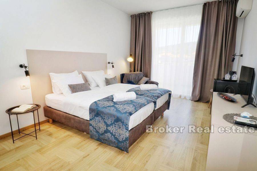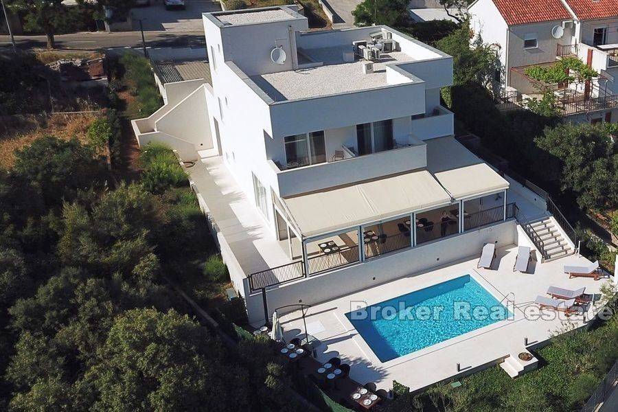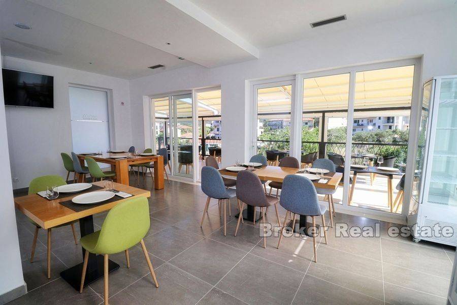 Prodaje se kuća s restoranom stambene površine 340 m2 položena na zemljištu od 933 m2 smještena na vrhunskoj poziciji. Nekretnina je izgrađena 2019/2020.g.Nekretnina se nalazi na sjevernoj strani otoka Čiova udaljena svega 100 m od centra mjesta i prekrasnih plaža.  Kuća se sastoji od 2 etaže. Prizemlje se sastoji od restorana s kuhinjom i velikom terasom s koje se izlazi na bazen. Na drugoj etaži se nalazi predvorje s recepcijom i 3 apartmana od kojih se svaki sastoji od sobe, kupatila i balkona s kojih se pruža pogled na more.  Nekretnina ima 20 parkirnih mjesta za potrebe gostiju restorana i apartmana.  Obzirom na trenutno stanje i razvojni potencijal samog mjesta u kojem se nalazi, ova nekretnina predstavlja kvalitetnu investiciju.