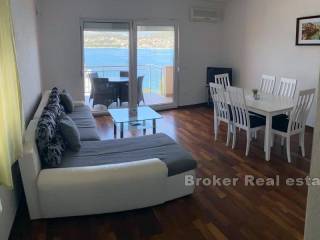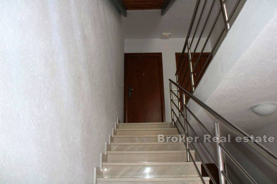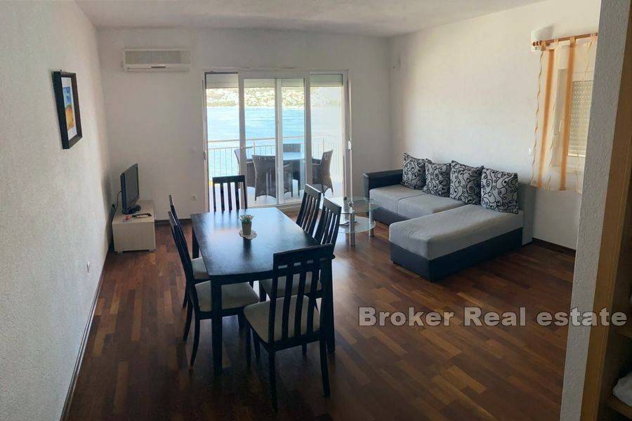Apartmanska kuća s prekrasnim pogledom na more. Kuća je udaljena 50m od mora. Smještena u kupališnoj zoni bez prometa na otoku Čiovu. Objekt je izgrađen 2009.godine na zemljištu ukupne površine 412m2, sa okućnicom površine 256m2. Objekt se sastoji od tri etaže (prizemlje i dva kata), a ukupna stambena površina iznosi 362m2. U prizemlju i na prvom katu se nalaze po dva jednosobna apartmana. Svaki apartman ima spavaću sobu, kupaonicu I dnevni boravak s blagavaonicom, te izlaz na balkon koji pruža prekrasan pogled na more. Na drugom katu se nalazi dvosobni apartman sa izlazom na veliki balkon koji pruža prekrasan pogled na more. Svi apartmani su moderno namješteni te redovito održavani. Ispred kuće je dostupno 6 parking mjesta te roštilj.  Nalazi se u blizini plaže, restorana, dućana, kafića te aerodroma. Idealna je u svrhu turističkog iznajmljivanja ali za osobnu uporabu.