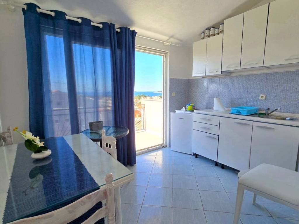 Apartmanska kuća s pogledom na more, smještena u Rogoznici na pješačkoj udaljenosti od centra mjesta. Površina kuće iznosi 300 m2, raspostranjenih preko četiri etaže. U suterenu se nalazi apartman s dnevnim boravkom, kuhinjom s blagovaonicom, dvije spavaće sobe i kupaonicom. Prizemlje se sastoji od dva apartmana, od kojih se veći sastoji od dvije spavaće sobe, dvije kupaonice, dnevnog boravka s kuhinjom i izlazom na terasu, dok manji apartman uključuje jednu spavaću sobu, kupaonicu, kuhinju i terasu. Na prvom katu smješten je trosobni apartman koji nudi dnevni boravak, kuhinju s blagovaonicom, kupaonicu i dodatni WC. Dnevni boravak i jedna spavaća soba imaju izlaz na terasu s pogledom na more. Drugi kat čini apartman s dvije spavaće sobe, kuhinjom i blagovaonicom s izlazom na terasu, te kupaonicom. Uz kuću se nalaze tri parkirna mjesta, jedno garažno mjesto, te veliki vrt, pružajući dodatni prostor za boravak na otvorenom. Na kratkoj udaljenosti od kuće su svi potrebni sadržaji poput restorana, trgovina, marine i plaža, što čini ovu ponudu izvrsnom prilikom za ulaganje u turističko poslovanje ili život u jednom od najatraktivnijih dijelova dalmatinske obale.