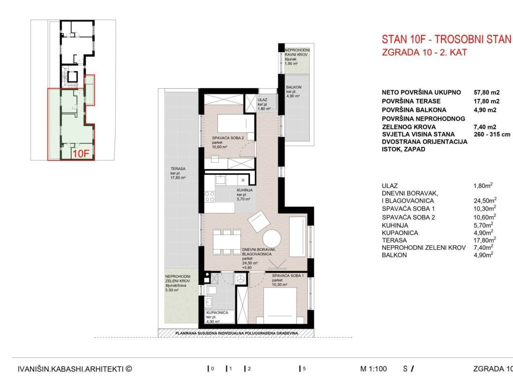U okruženju u kojem dominiraju manji objekti, , blizine tramvaja 2min, škole, fakulteta, bolnice, vrtići i ostalih sadržaja koja su potrebna i po mjeri mlade obitelji potrebnih za moderno stanovanje.