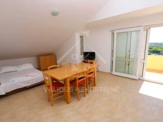 Posredujemo pri prodaji stana u Novalji na prekrasnoj lokaciji, udaljenom 600 metara od centra grada. Stan se nalazi na trećem katu zgrade u kojoj je smješteno ukupno 9 apartmana i zauzima površinu cijele etaže. Sastoji se od četiri sobe, dvije kupaone, dvije velike terase i velike ostave. S terasa se pruža prekrasan pogled na more i na Velebit. Stan ima 2 parkinga. Ukupna površina parkinga je 25 m2. Stan je kategoriziran i iznajmljuje se za smještaj max. 8 osoba. Jednim jednostavnim građevinskim zahvatom, moguće ga je pretvoriti u dva zasebna apartmana za iznajmljivanje, za smještaj ukupno 10 osoba. Stan je klimatiziran i prodaje se namješten. Zgrada je etažirana i ima uporabnu dozvolu. Vlasništvo je uredno, bez tereta. Ukupna korisna površina stana je 144,60 m2, obračunska površina je 100,22 m2. Cijena je 285.000 Eur-a.